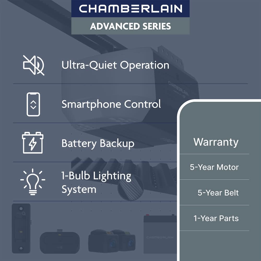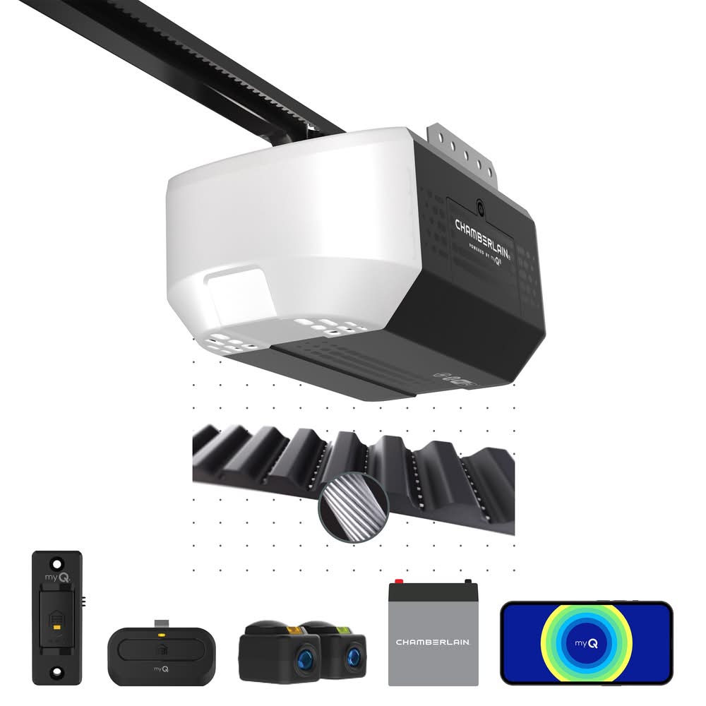 Chamberlain 1/2 HPS myQ Smart Compatible Belt drive Garage Door Opener Wi-Fi Compatibility and Battery Back-Up LED Light