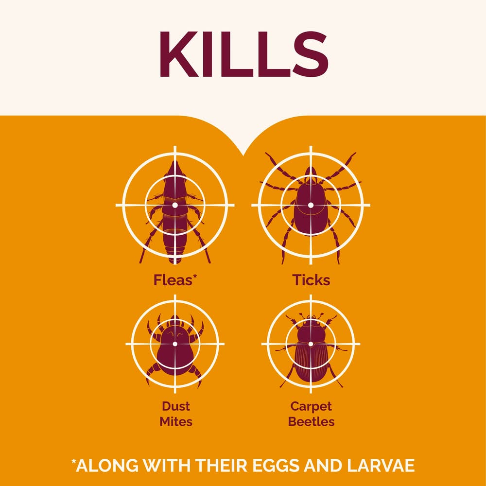 Spot flea treatment: ideal for spot treatment on carpets, upholstery, drapes and pet bedding. Kills fleas, flea eggs, flea larvae and ticks. Contains mylar: insect growth regulator breaks the flea cycle.