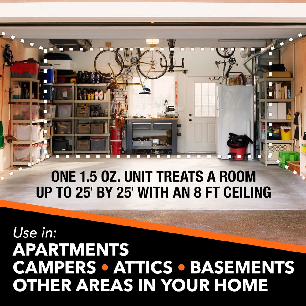 Bug fog seeks out roaches and fleas in hard-to-reach areas. Emits penetrating fog to kill roaches where they hide in your home. Effective roach killer providing protection for up to 2 months. Insecticide fogger doesn't leave a wet and messy residue after application. One roach fogger treats an entire 25 feet by 25 feet room with an 8 foot ceiling. Bug fogger also kills ants, black carpet beetles, crickets, earwigs, fleas & other insects.