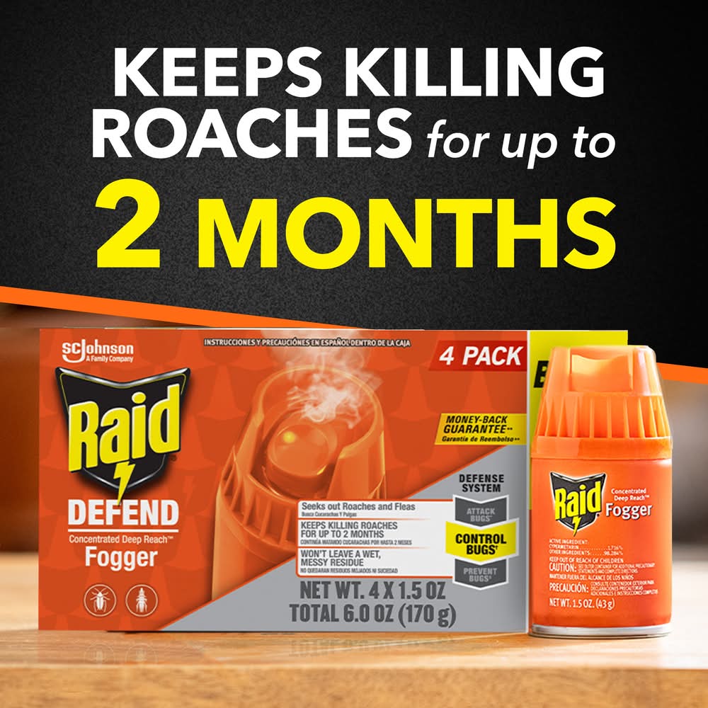 Raid Defend Concentrated Deep Reach Fogger 1.5 -oz Fogger Roach killer 4 -Pack