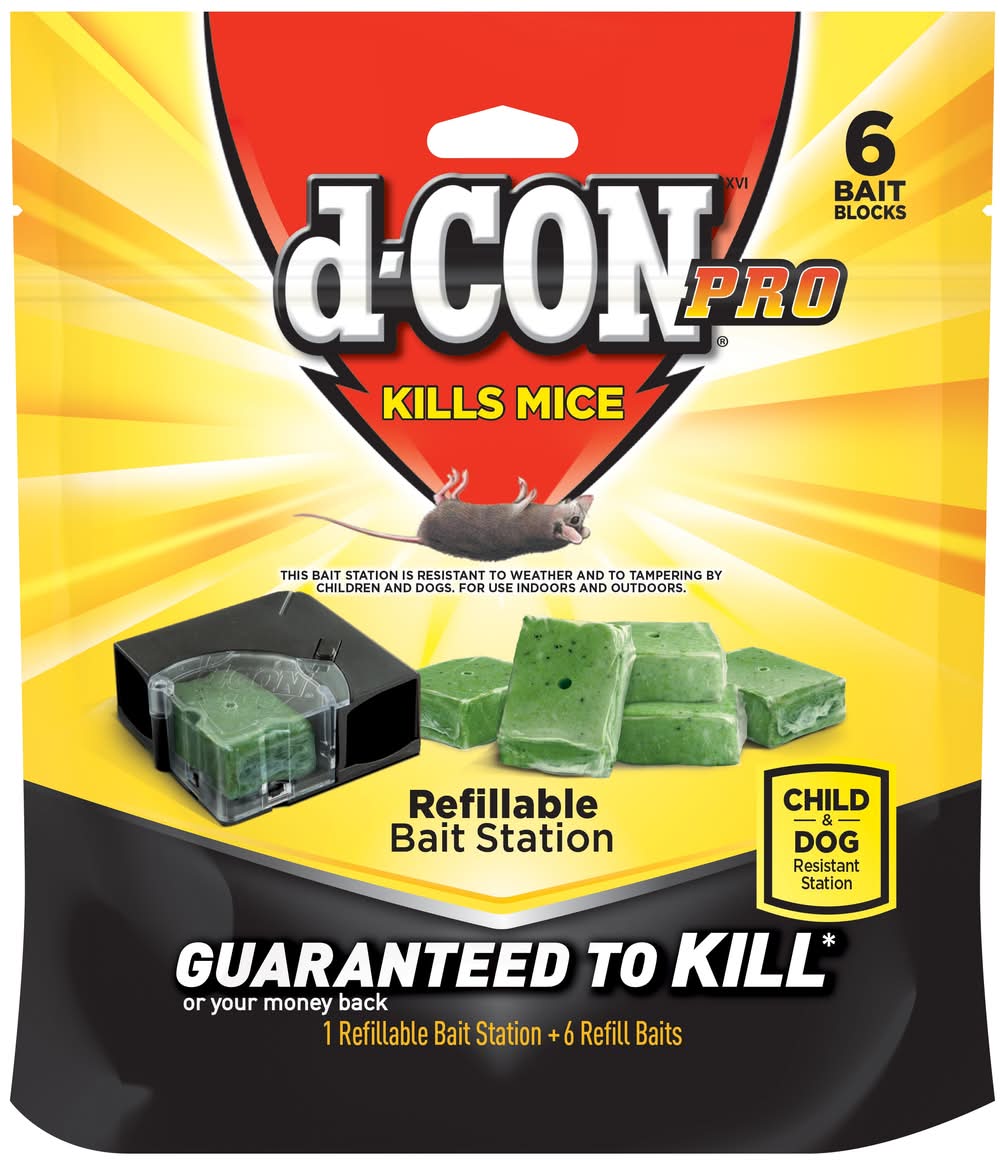 d-Con bait is tastier and helps reduce house mice problems.. This bait may be considered safer because it contains no neurotoxins or anti-coagulants.. This bait station is 'Child Resistant'. Mice get the bait, Kids can’t..