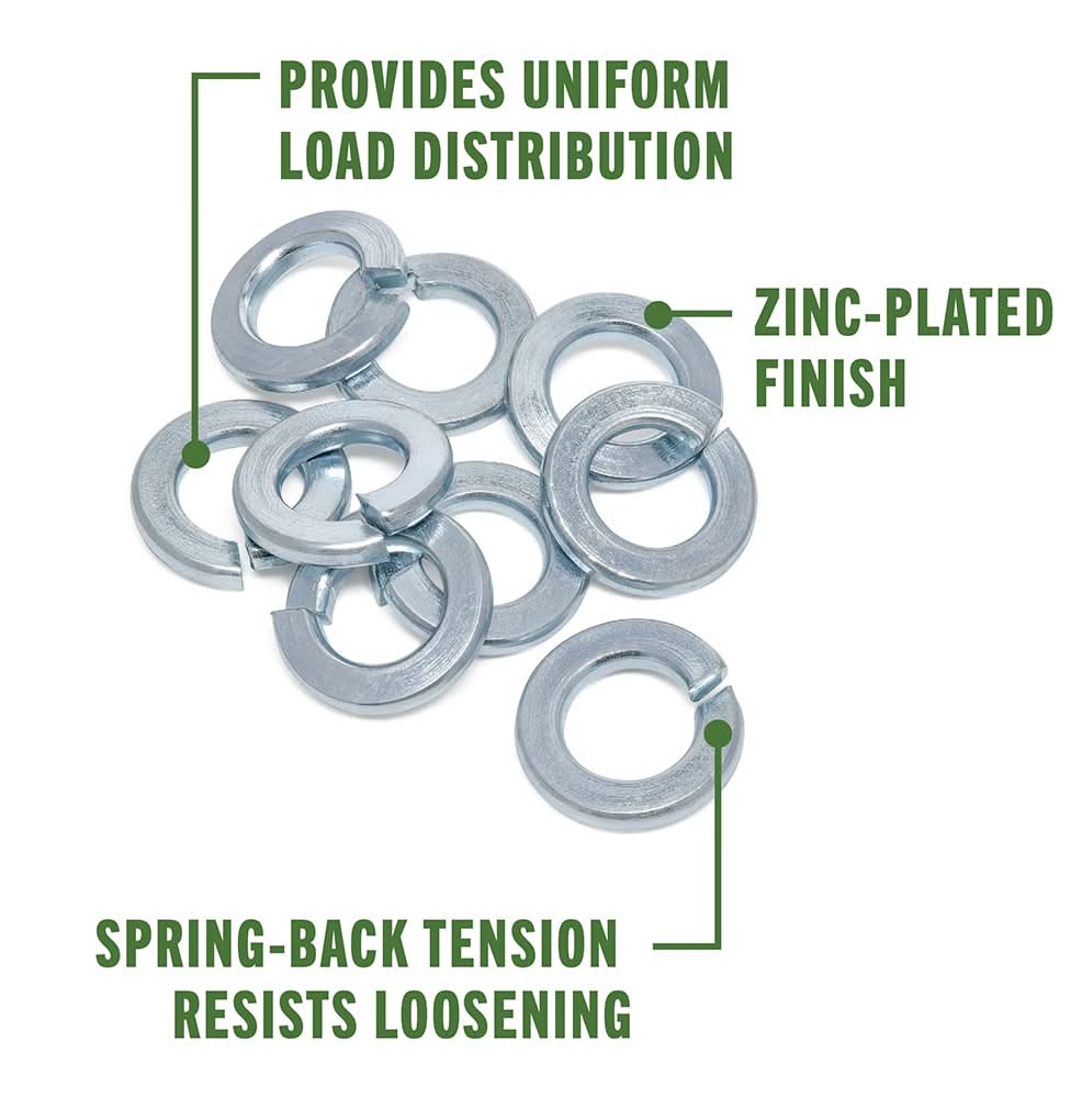 Commonly used in applications using a bolt or a screw where two pieces are being joined together. Split ends grip the material surface to prevent loosening during vibration. Zinc finish for moderate corrosion resistance. Use with like nuts and bolts of similar diameter. For use with any indoor or outdoor project with treated lumber.