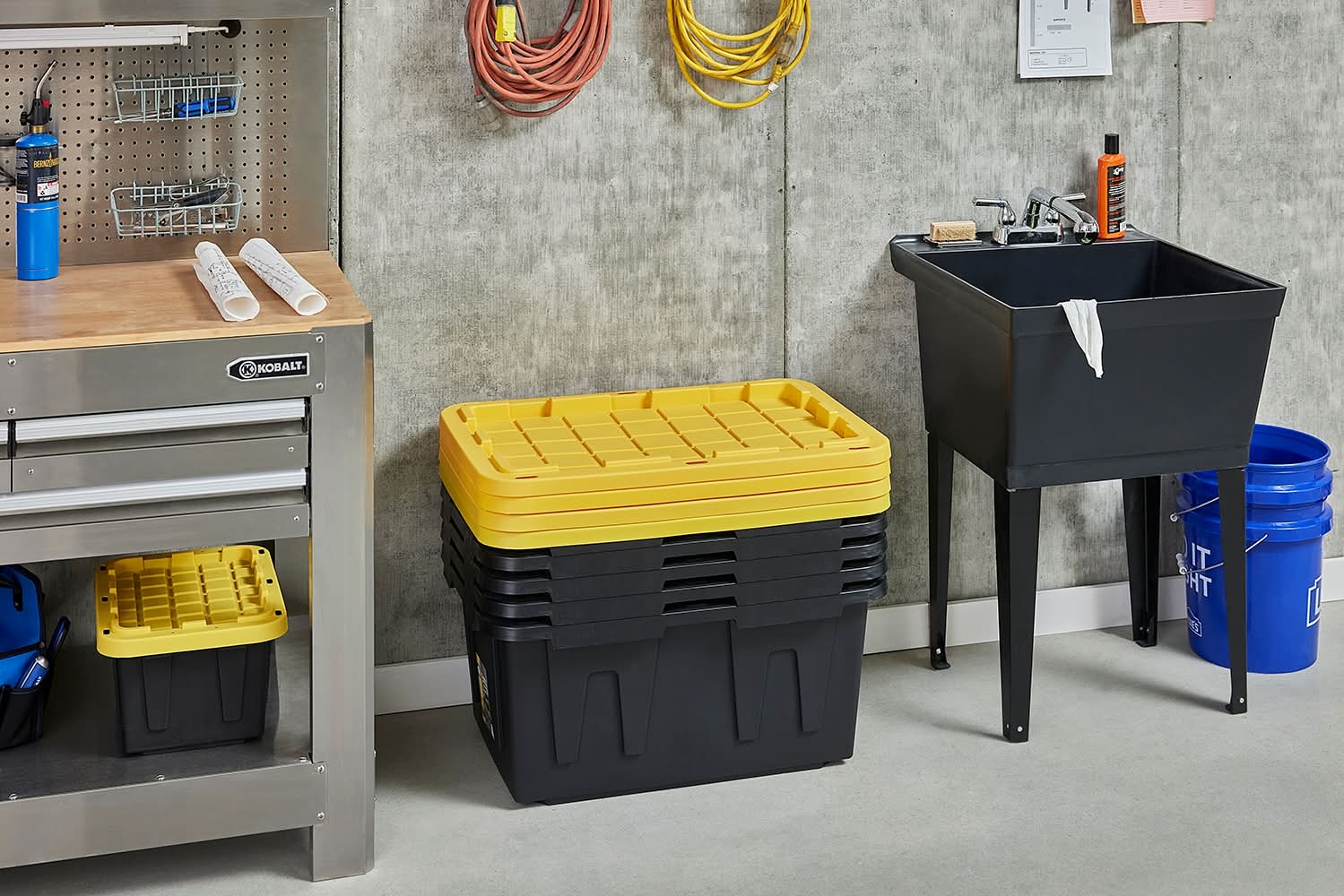 Project Source Commander Large 27 -Gallons ( 108 -Quarts ) Black and Yellow Heavy Duty Stackable Tote with Standard Snap Lid