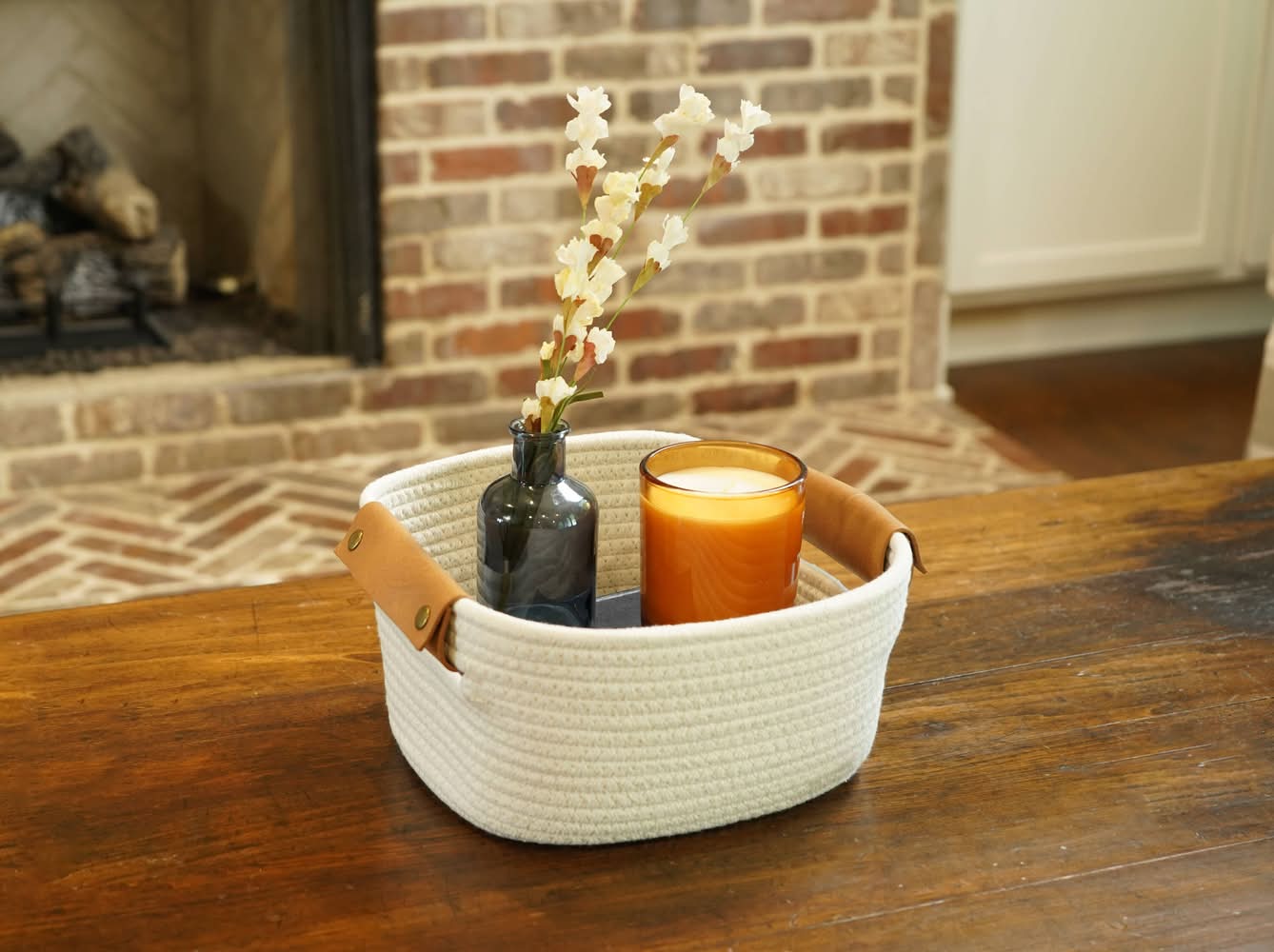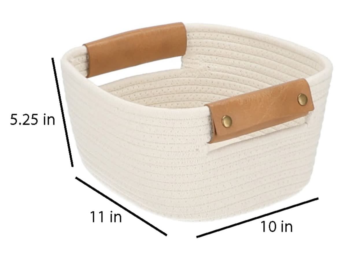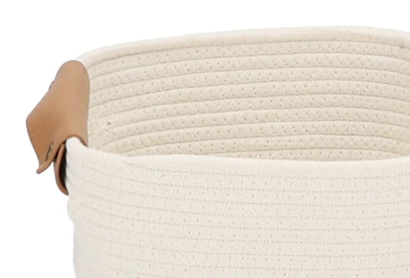 Perfect cream color basket features soft and firm material with two chic stylish handles that is super durable and holds their shape well. Quality crafted from durable polypropylene fiber with subtle tone creating cozy look and arrives ready to use with no assembly required. Thoughtfully crafted with sturdy yet soft, decorative faux leather handles allowing easy transportation to different corners of your home without straining your hands. Features sturdy construction to ensure long-lasting durability, no collision scratches, and will not separate material or fall apart after years of continuous use. This charming basket provides efficient solution and easy to care for by simiply spot or wipe clean with a soft cloth. Natural and sustainable cotton material basket is a perfect solution to accommodate baby's essentials, organize toys, and much more in a systematic manner as well making your home neat, clean, and cozy. A vintage feel with a modern touch of this coiled rope design compleme Color: Off-white