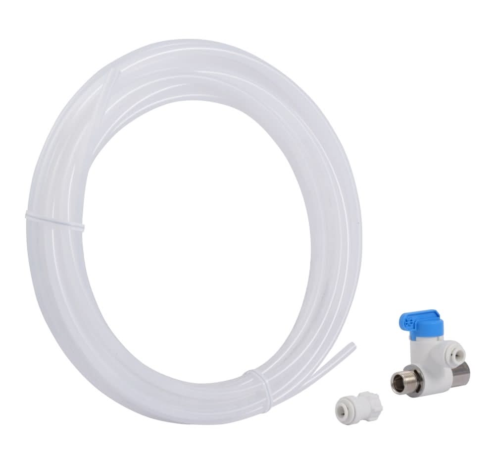Kit includes angle stop valve, 25-ft of natural polyethylene tubing and refrigerator connection. Utilizes John Guest push-to-connect technology with over 50 years of proven performance. Installs in minutes onto existing under sink water supply valve. Compatible with most major refrigerator brands. For CA Residents Only: WARNING: This product can expose you to chemicals including Lead which are known to the State of California to cause cancer and birth defects or other reproductive harm. For more information go to www.P65Warnings.ca.gov. Color: White