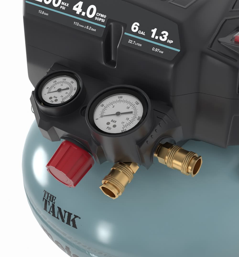 MORE PRESSURE: At 200 PSI, get 25% greater PSI than a basic pancake compressor (Compared to model EC710S). 30% MORE AIR FLOW: 4 CFM at 90 PSI allows for multiple large body nailers to be used on a single compressor. VERSATILITY: Simultaneously runs 2 framing or 2 roofing or 2 siding or 3 finish or 5 brad nailers. PRODUCTIVITY: Consistently drives nails flush with no delay. LIGHTWEIGHT: At only 41 lbs, it is 22% lighter compared to a traditional twin-stack compressor. CAPACITY: 6-gallon tank provides all the air to run a crew. DURABLE: All metal handle outlasts the harshest demands of the jobsite. LOW MAINTENANCE: Oil-free design for essentially no maintenance. AWARDS: 2014-2020 Pro Preferred Brand for pneumatic nailers by Builder and Developer Magazine. For CA Residents Only: WARNING: This product can expose you to chemicals including Lead which are known to the State of California to cause cancer and birth defects or other reproductive harm. For more information go to www.P65Warnings.ca.gov.
