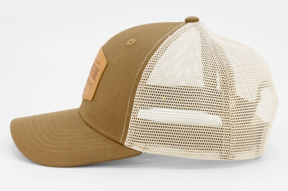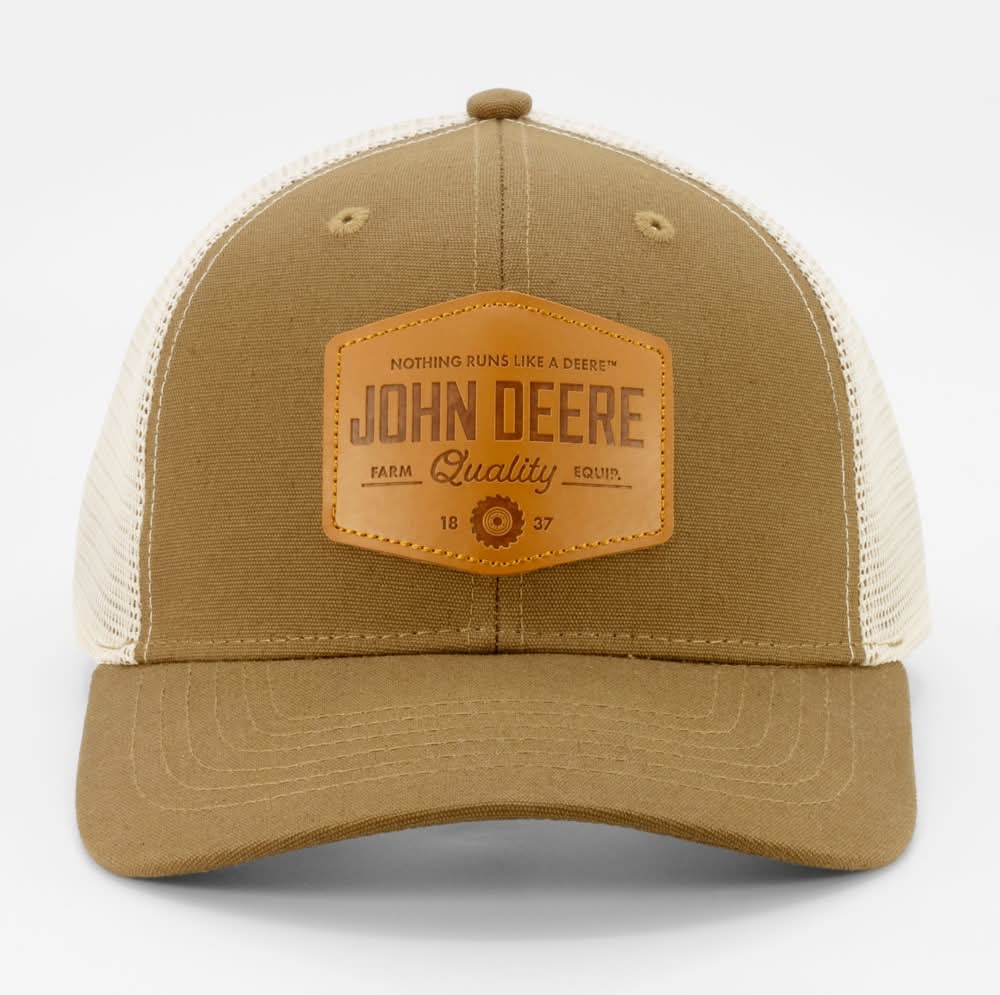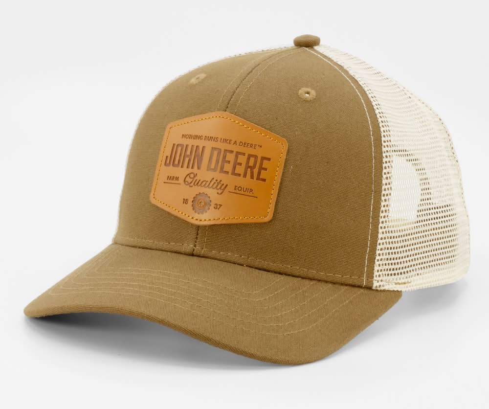 This structured trucker hat with a mesh back is a must-have staple for your John Deere cap collection.. Made with a heavy cotton canvas and polyester mesh - you can throw on this cap for any adventure.. With an adjustable fit snapback closure and a structured crown that will keep its shape, this cap is both durable and comfortable.. Color: Brown