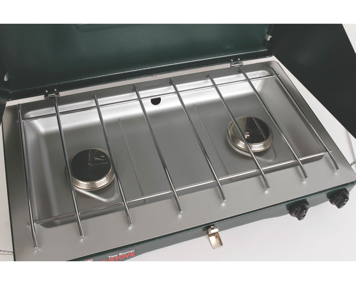Up to 20,000 total BTUs of cooking power. 2 independently adjustable burners for precise temperature control. Adjustable WindBlock panels shield burners from wind. Fits a 12 in and 10 in pan at the same time. PerfectFlow™ pressure regulator for consistent performance, even in extreme conditions. Lasts up to 1 hour with both burners on high on one 16.4 oz propane cylinder (sold separately). Rust-resistant aluminized steel cooktop. Sets up easily at the campsite, tailgate or wherever outdoor adventures take you. Color: Green