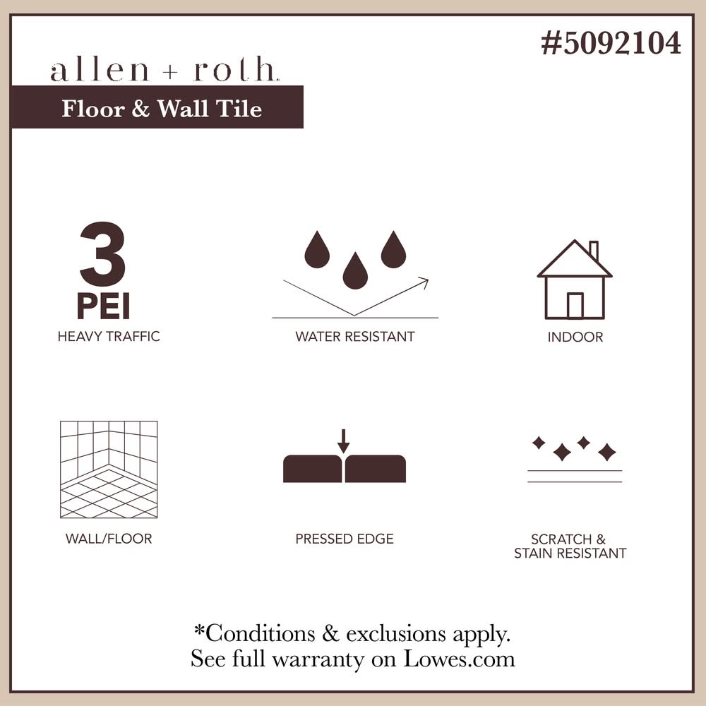 With a PEI rating of 3, this floor and wall tile is great for residential light to moderate traffic areas. 6-8% water absorption and Not suited for freeze/thaw conditions. This is a ceramic floor and wall tile with a matte finish. Shades of dark browns with natural wood look grains and slight texture to the touch. Rectangular shaped field tile that have pressed edges. Scratch- and stain-resistant, durable and is easy to clean for hassle-free upkeep. Sold by piece individually, each piece covers 0.98sqft (A full carton covers 10.56sqft so to purchase a full carton you must buy 11 pieces).