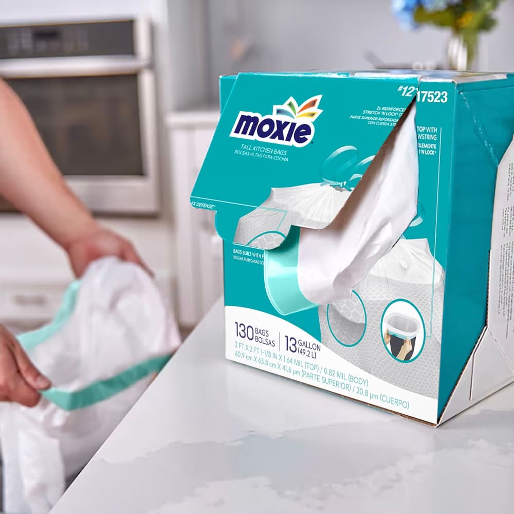 Moxie 13-Gallon Scent free White Indoor Plastic Kitchen Drawstring Trash Bag 130 -Count