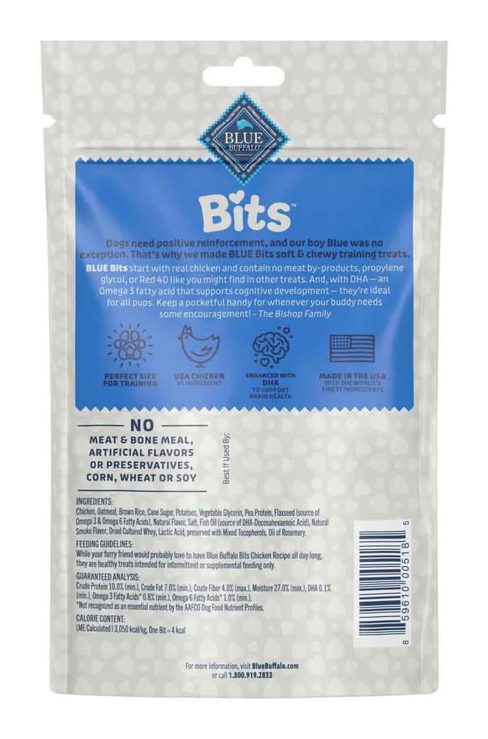 Made with the finest natural ingredients and have no chicken or poultry by-product meals and are corn, wheat and soy free. Contains chicken as a high-quality protein source, to help support cognitive development in puppies and omega 3 and 6 fatty acids to help promote healthy skin and coat. Real chicken first: blue bits dog training treats are made with delicious real chicken as the first ingredient making them an ideal reward. Use Location: Indoor/Outdoor Color: Blue