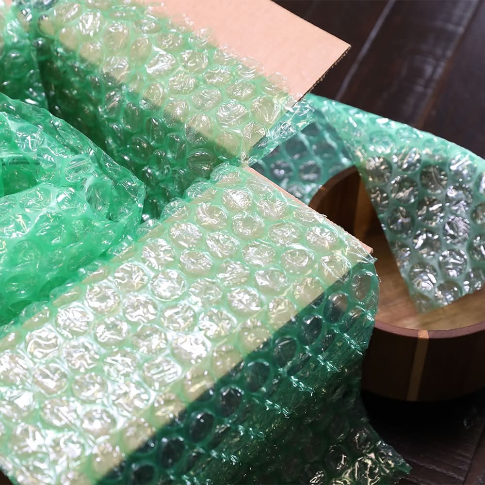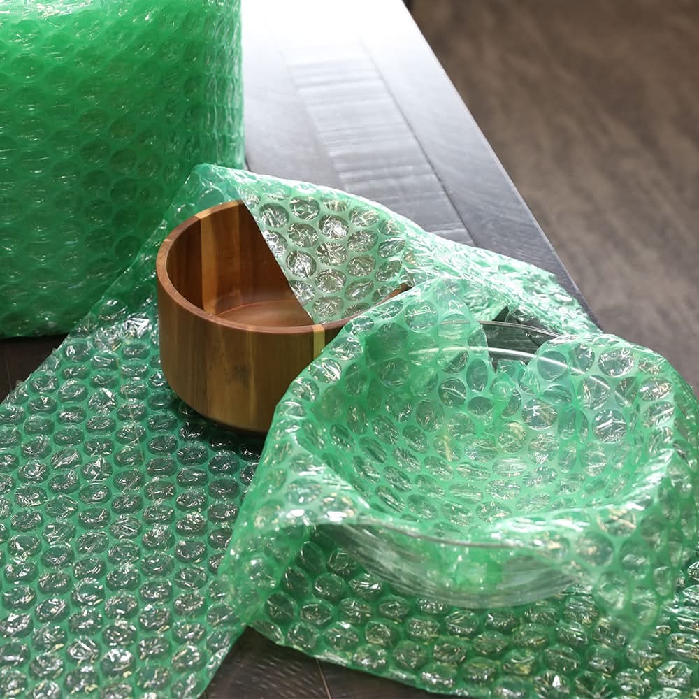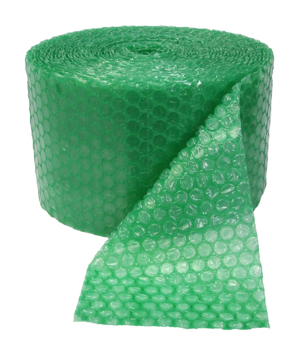 Designed for easy wrapping, cushioning, and surface protection for heavy or large items and valuables. Heavy duty bubble cushioning is stronger than standard bubble and should be used as void fill to prevent items from shifting in boxes. 100 Square foot roll is ideal for medium to large sized moves. Made in the USA and perforated every 12 inches for easy tear off. Heavy duty bubble cushioning is ideal for bulky and fragile items. Superior packaging protection. • Color: Green • Packaging: Reusable