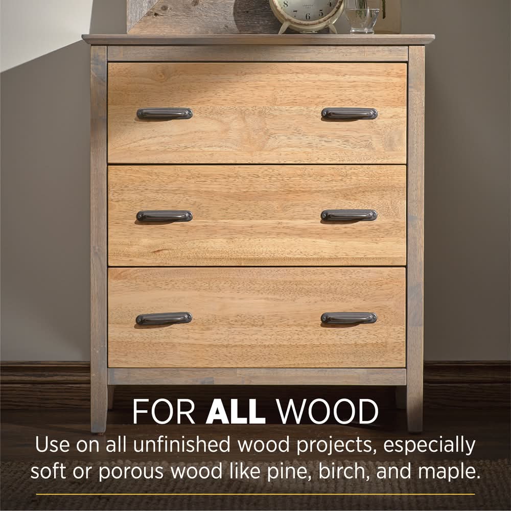 Specifically designed to use before staining to help prevent streaking and blotching and help ensure a beautiful, even stain. Use on any wood but is especially necessary when working with soft or porous woods like pine, alder, birch, and maple. Penetrates the grain of the wood to promote uniform acceptance of oil-based stains. For CA Residents Only: WARNING: This product can expose you to chemicals including Lead which are known to the State of California to cause cancer and birth defects or other reproductive harm. For more information go to www.P65Warnings.ca.gov. Color: Clear