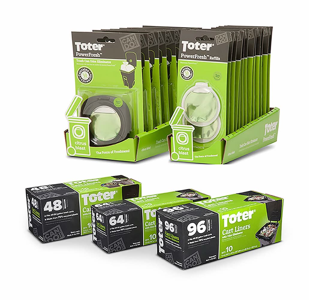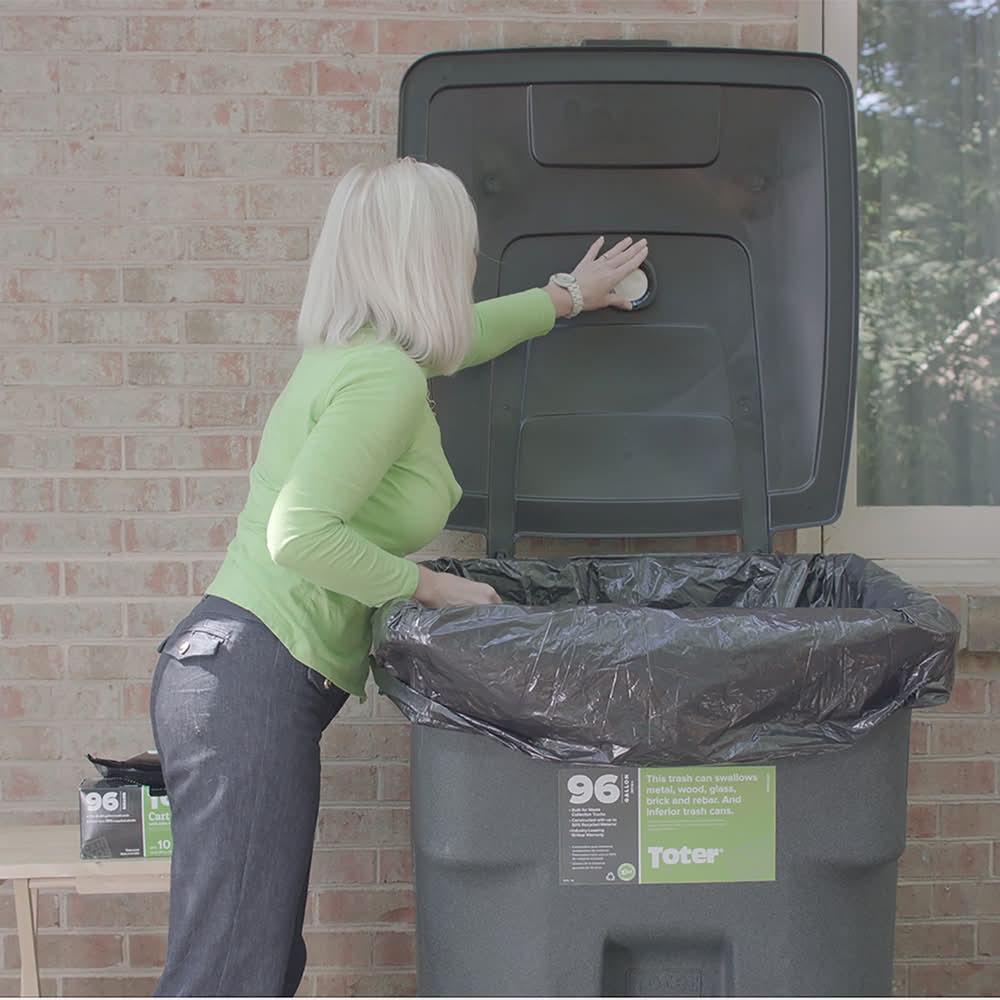1.1 mil thick bag opening measuring 39 inches x 10 inches and is 65 inches tall. The 96 gallon liner is perfect for protecting the inside of a 96-gallon can. Made to fit Toter and all two-wheel garbage cans. Covers the inside of your cart to protect against sticky messes and goes out with the garbage truck on trash day. Contains a built-in odor eliminator to curb the smell of trash day. Made with 75% recycled content. Sold in packs of 10. Available in 48 gallon, 64 gallon, and 96 gallon sizes. Manufactured in the USA. Use Location: Outdoor Color: Black
