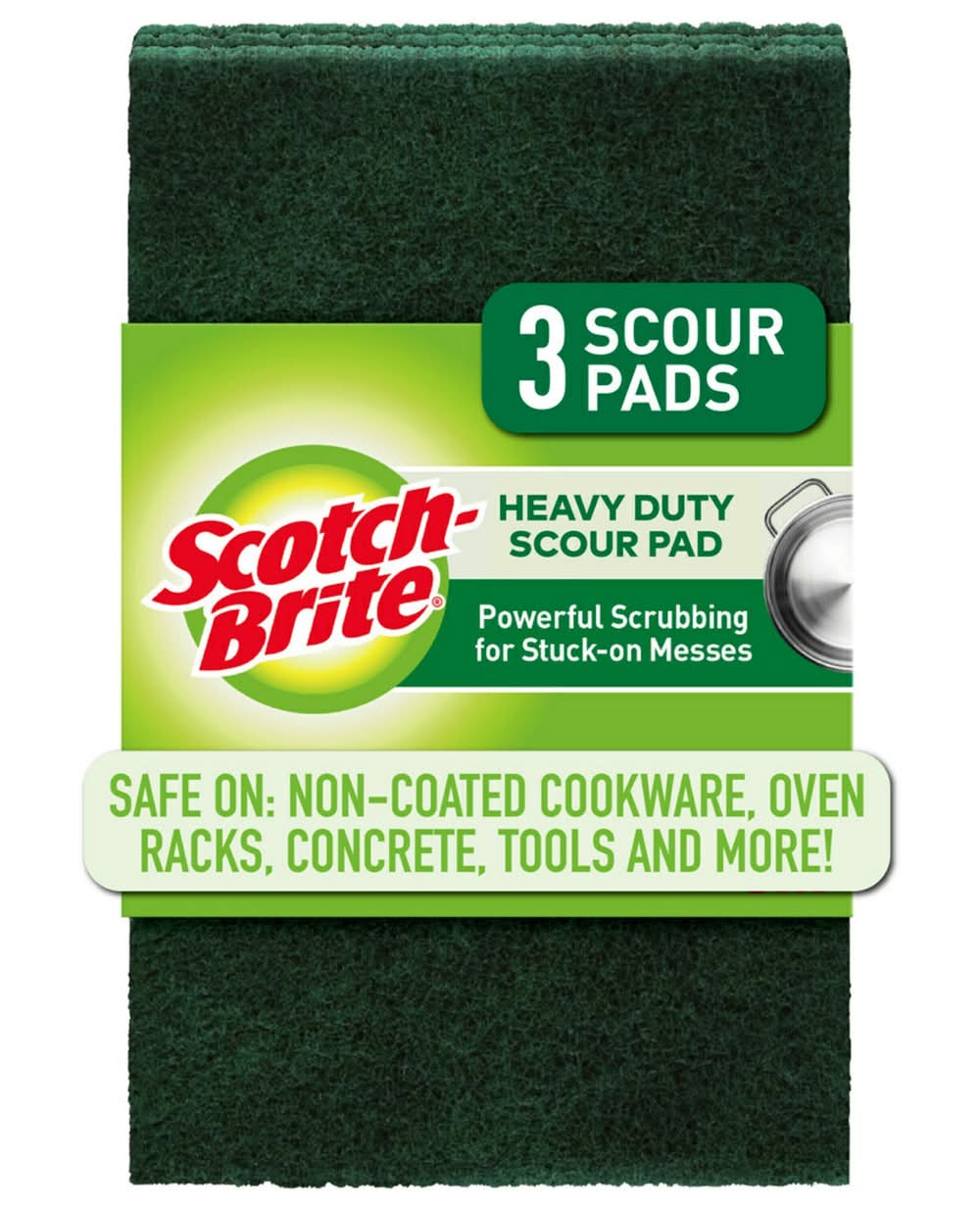 Cleans tough, baked-on messes. REMOVE STUBBORN MESSES: Tackle tough, baked on messes with these powerful scouring pads, making even the messiest surfaces shine like new.. DURABLE & LONG-LASTING: These heavy duty scouring pads are made with durable, long-lasting materials.. PERFECT FOR TOUGH JOBS: They’re ideal for cleaning uncoated pots and pans, grates, oven racks, outdoor grills, and more Do not use on stainless steel appliances, sinks or glass.. MADE FROM RECYCLED CONTENT: The scrubbing fibers are made from 100% recycled plastic for a sustainable clean.. SANITIZE UP TO 20X: Sanitize and clean these scrubbing pads in the dishwasher up to 20X!. AMERICA’S #1 SCOUR BRAND: Committed to quality and satisfaction, known for innovation in cleaning tools and trusted for 65 years* (*2023 IPSOS Brand Health). Use Location: Indoor/Outdoor • Color: Green • Packaging: Reusable