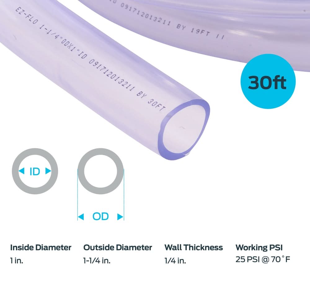 EZ-FLO 1-in Inner Diameter PVC Clear vinyl tubing (By-the-Foot)