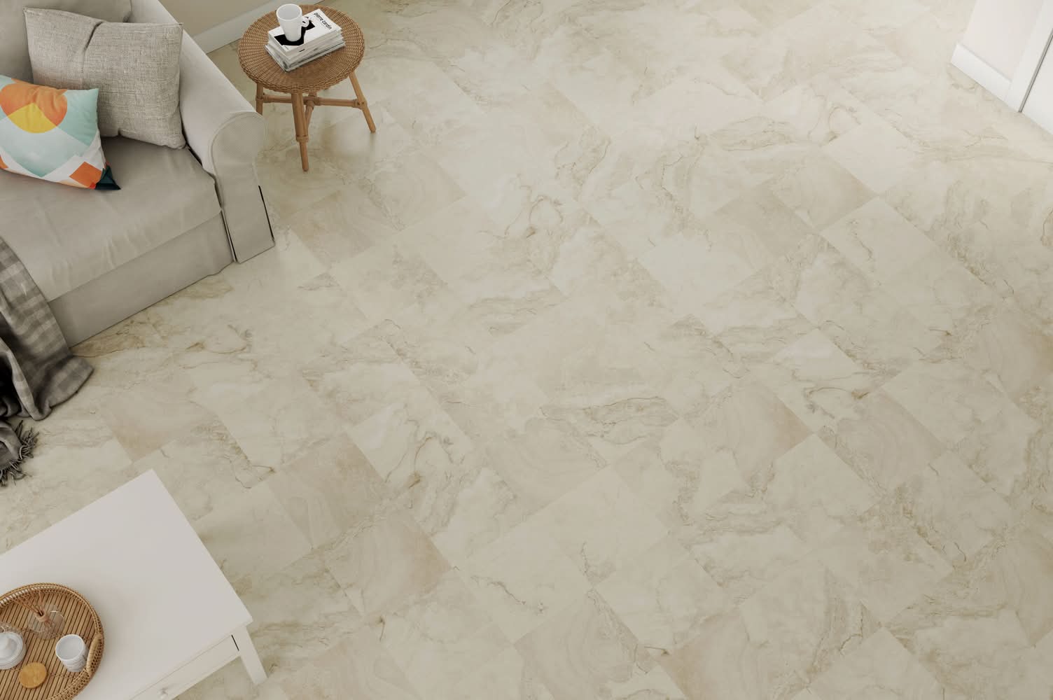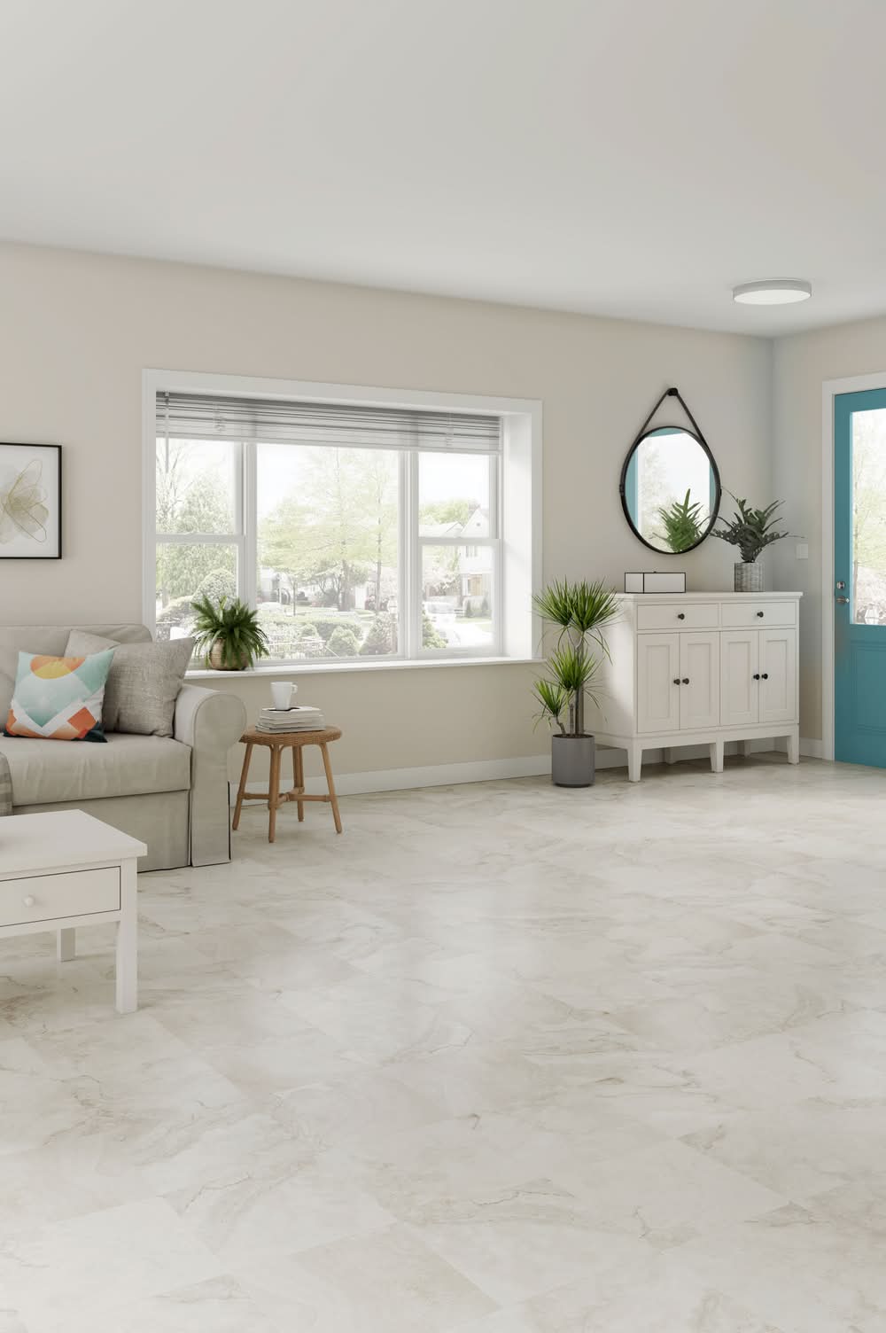Style Selections Peel & Stick Water-Resistant Vinyl Floors deliver everyday value with its scratch- and wear-resistance—a good choice for living areas like kitchens, bedrooms, dining rooms, bathrooms, and more . Alpine Stone 12x12 is a peel and stick tile in a soft off-white stone with delicate gray-beige veining for an airy, naturally radiant look. No separate samples needed—Simply purchase one piece to see the color, texture, and quality in person. Sold by the piece; purchase 45 tiles in a carton; one carton covers 45 sq ft. Peel-and-stick backing makes tiles perfect for DIYers who value easy & fast installs—no additional adhesive needed or recommended. Requires use of primer and 100-lb vinyl floor roller or a wall/laminating three-section roller with extendable handle for full adhesion—Review Installation Video & Guide for detailed instructions & subfloor compatibility. Floor Install Only—Install in a traditional layout or on the diagonal. Underlayment not required or reco Use Location: Indoor Color: Off-white