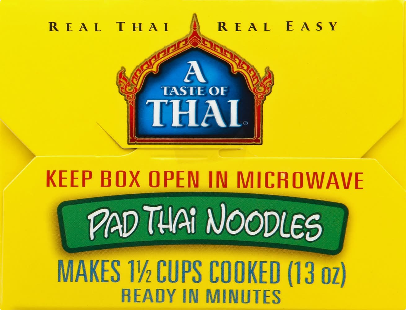 Directions for use: Directions: Keep box open in microwave. Microwave Instructions: 1. Remove all envelopes from carton. Add 1 cup water to carton (to inside fill line). 2. Except for peanuts, add contents of all envelopes to carton, starting with sauce. 3. Leave carton open, microwave on high for 3 minutes. Remove carton carefully (hot). Stir noodles. 4. Leave carton open, microwave for 1 more minute. Close carton, let rest 1 minute. (If noodles are too firm, cook for 1 more minute.) Add peanuts, enjoy! Microwaves vary. Heating times are approximate. Caution: Contents hot after microwaving! Stove Top Instructions: 1. Add 1 cup water to saucepan. 2. Add contents of all envelopes, except peanuts. 3. While stirring, bring to a boil. Simmer 4 minutes or until noodles are soft. Add peanuts & serve! Add additional water as needed. Once cooked, do not reheat in box. View cooking instruction videos atasteofthai.com/videos. Mix it up. Make it your own! Add 1/2 cup (total) of your choice at last minute of cooking! Cooked meat, poultry, or fish; Firm tofu, drained; Vegetables; Beans, drained; Toasted nuts and seeds; Dried fruits. Storage recommendation: Ambient
