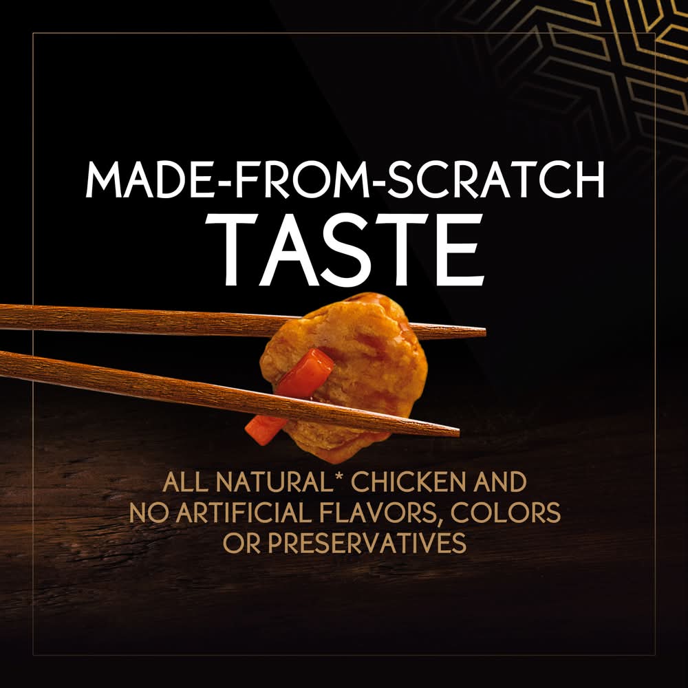 Experience a delicious, restaurant-style dining experience at home with P.F. Chang's Home Menu Orange Chicken Skillet Meal. Featuring battered chicken breast, carrots, water chestnuts and edamame in spicy orange sauce for frozen meals with authentic Asian food flavor. Made with all natural chicken, this frozen meal contains no artificial flavors, colors or preservatives, ensuring delicious and satisfying frozen entrees every time. Ideal for family meals when you're craving something special, these frozen skillet meals provide the gourmet experience of restaurant-quality cuisine in quick frozen meals that can be prepared in the comfort of your home. Simply cook this frozen food on the stove top according to the package instructions for easily prepared meals in minutes. Store this 22 ounce frozen chicken meal kit in your freezer until you're ready to enjoy. Stay in. Eat like you didn’t. Far from ordinary, P.F. Chang's Home Menu creates a gourmet Asian experience in your own kitchen. Simple, fresh ingredients balance one another to bring out all the best flavors—that’s how easy Asian food is done. *Minimally processed; no artificial ingredients. Conagra brands, PO Box 3534,Chicago,IL,60654