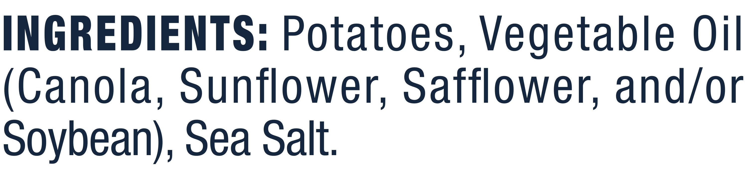 Ingredients: INGREDIENTS: POTATOES, VEGETABLE OIL (CANOLA, SUNFLOWER, SAFFLOWER, AND/OR SOYBEAN), SEA SALT. Contains: Soybeans