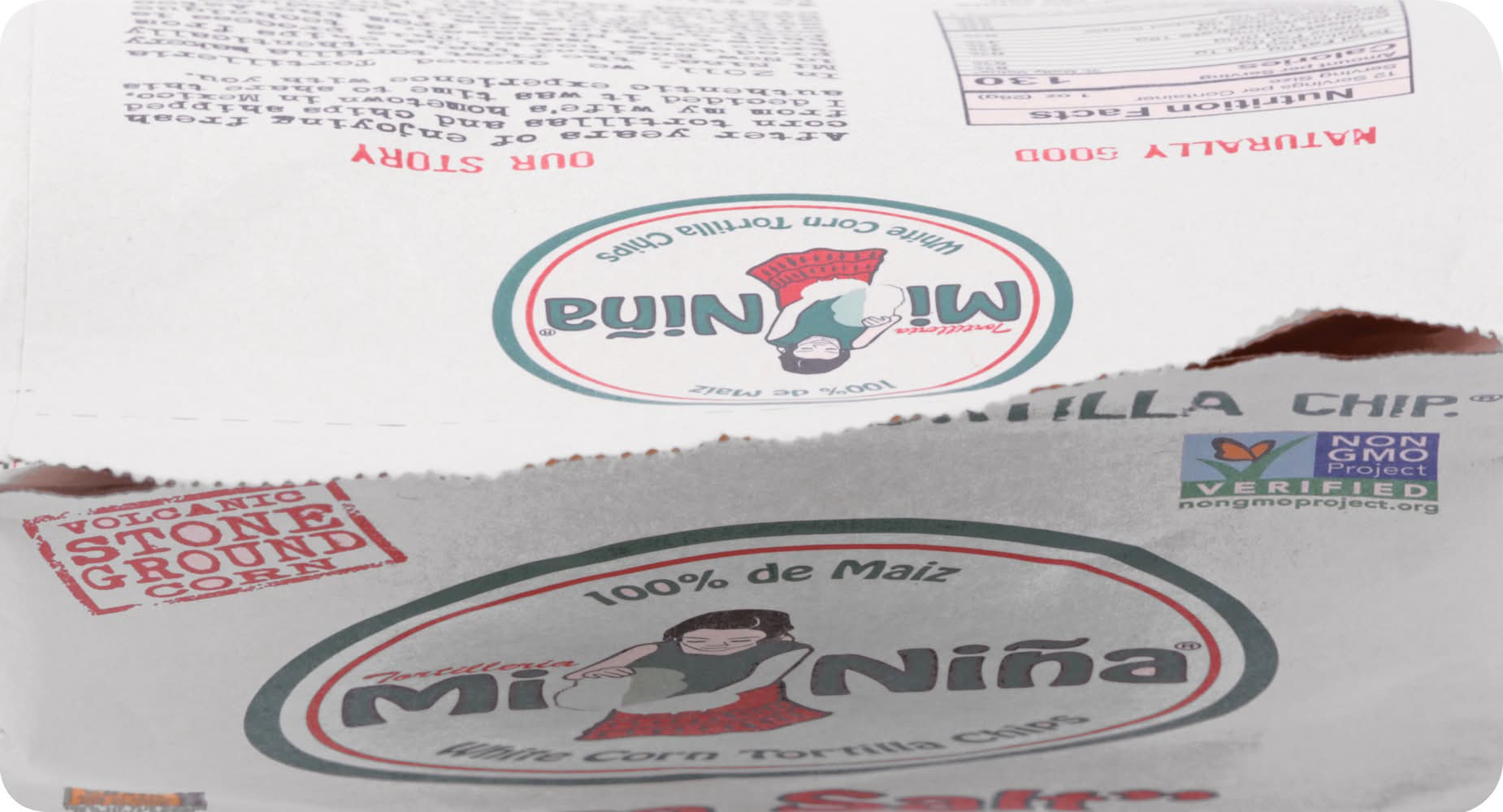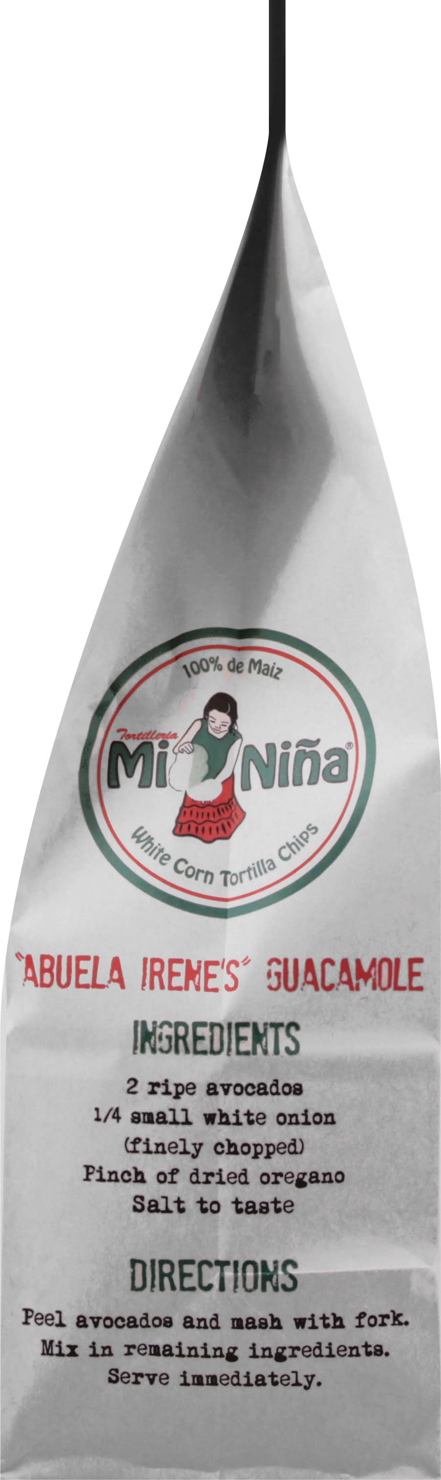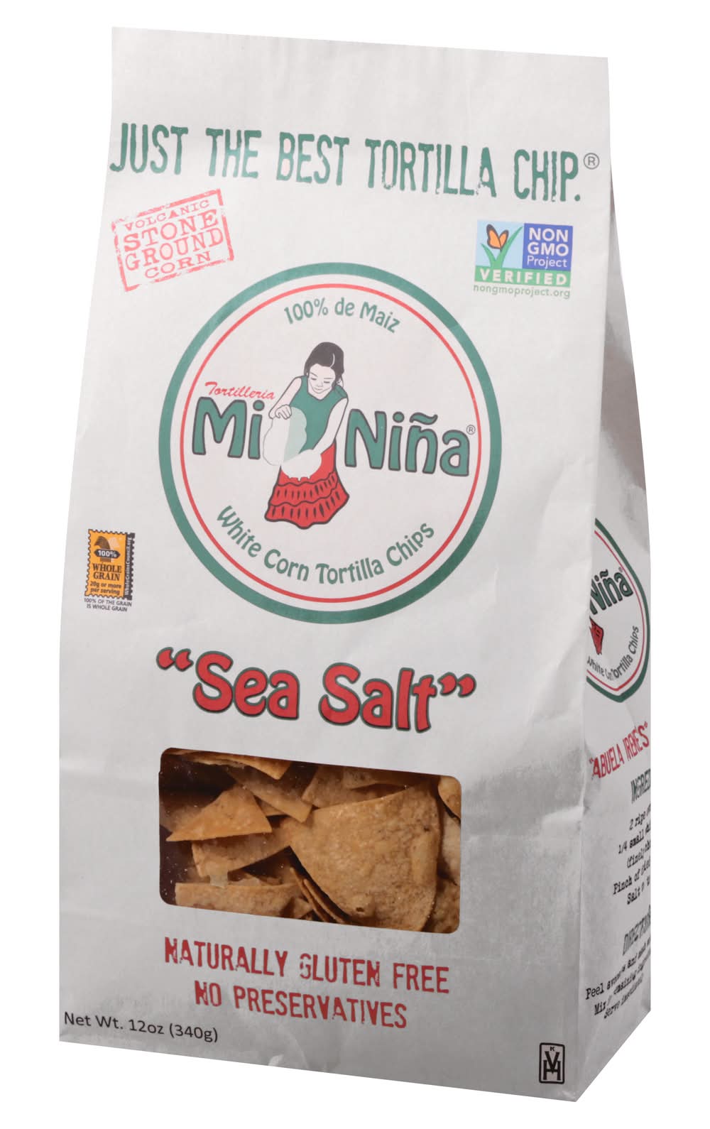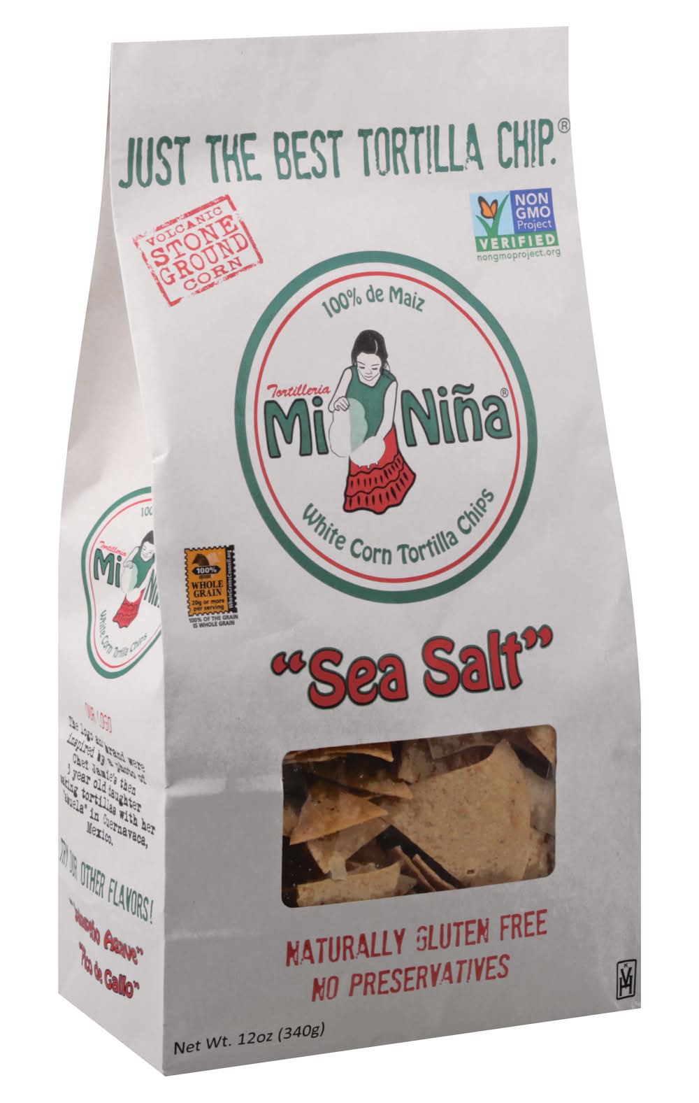 100% Whole Grain: 20 g or more per serving. 100% of the grain is whole grain. Naturally Gluten free. No preservatives. Just the best tortilla chip. Volcanic stone ground corn. Naturally good. Our Story: After years of enjoying fresh corn tortillas and chips shipped from my wife's hometown in Mexico, I decided it was time to share this authentic experience with you. In 2011, we opened Tortilleria Mi Nina the first tortilla bakery in New England that authentically produces tortilla chips from true corn masa. This process is known as Nixtamal, a technique that originates from the Aztec Period. Our masa is produced by cooking whole grain non-GMO corn with nothing else but filtered water and mineral lime. The corn mixture is then ground by hand-carved volcanic stones and crafted into our tortilla chips. We pride ourselves on recreating the art of masa making and staying true to tradition. We are grateful to be able to share these artisanally crafted tortilla chips from our family to yours. Chef Jamie and the Mi Nina Family. Our Logo: The logo and brand were inspired by a photo of chef Jamie’s then 3 year old daughter making tortillas with her abuela in Cuernavaca. Flavor: Sea salt
