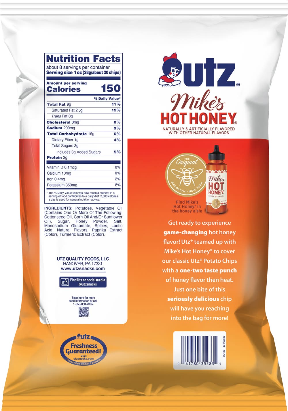 Naturally & artificially flavored with other natural flavors. Gluten free. The Original Brooklyn, New York. Get ready to experience game-changing hot honey flavor teamed up with Mike's Hot Honey to cover our classic Potato Chips with a one-two taste punch of honey flavor then heat. Just one bite of this seriously delicious chip will have you reaching into the bag for more. Flavor: Hot honey