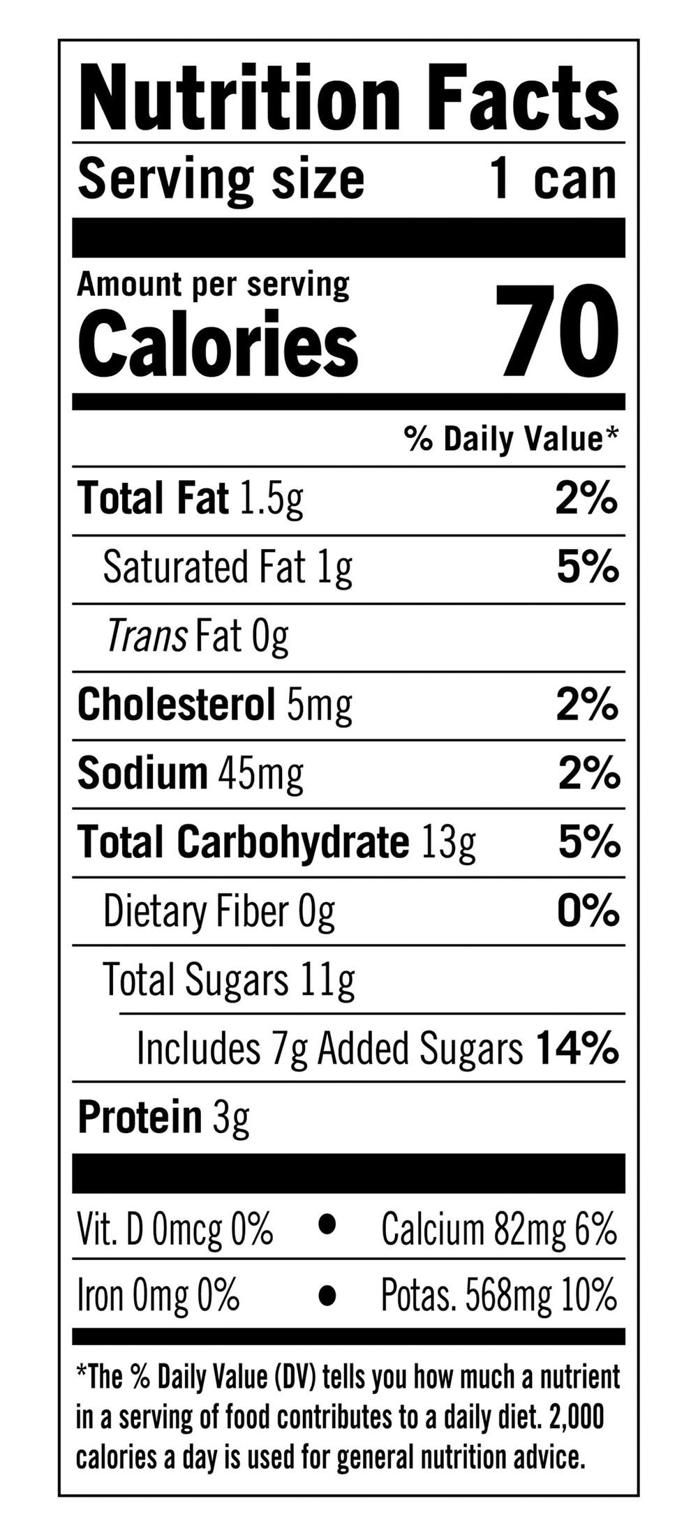 Flavored with other natural flavors. 70 calories per can. Milk. Nitrogen infused cold brew: Our signature cold brew is infused with nitrogen the moment you open it creating a rush of creamy texture and smooth, delicious taste. Crafted to perfection with silky vanilla flavor and cream. • Flavor: Vanilla sweet cream • North American Coffee Partnership, Purchase, NY,10577 • Packaging: Reusable