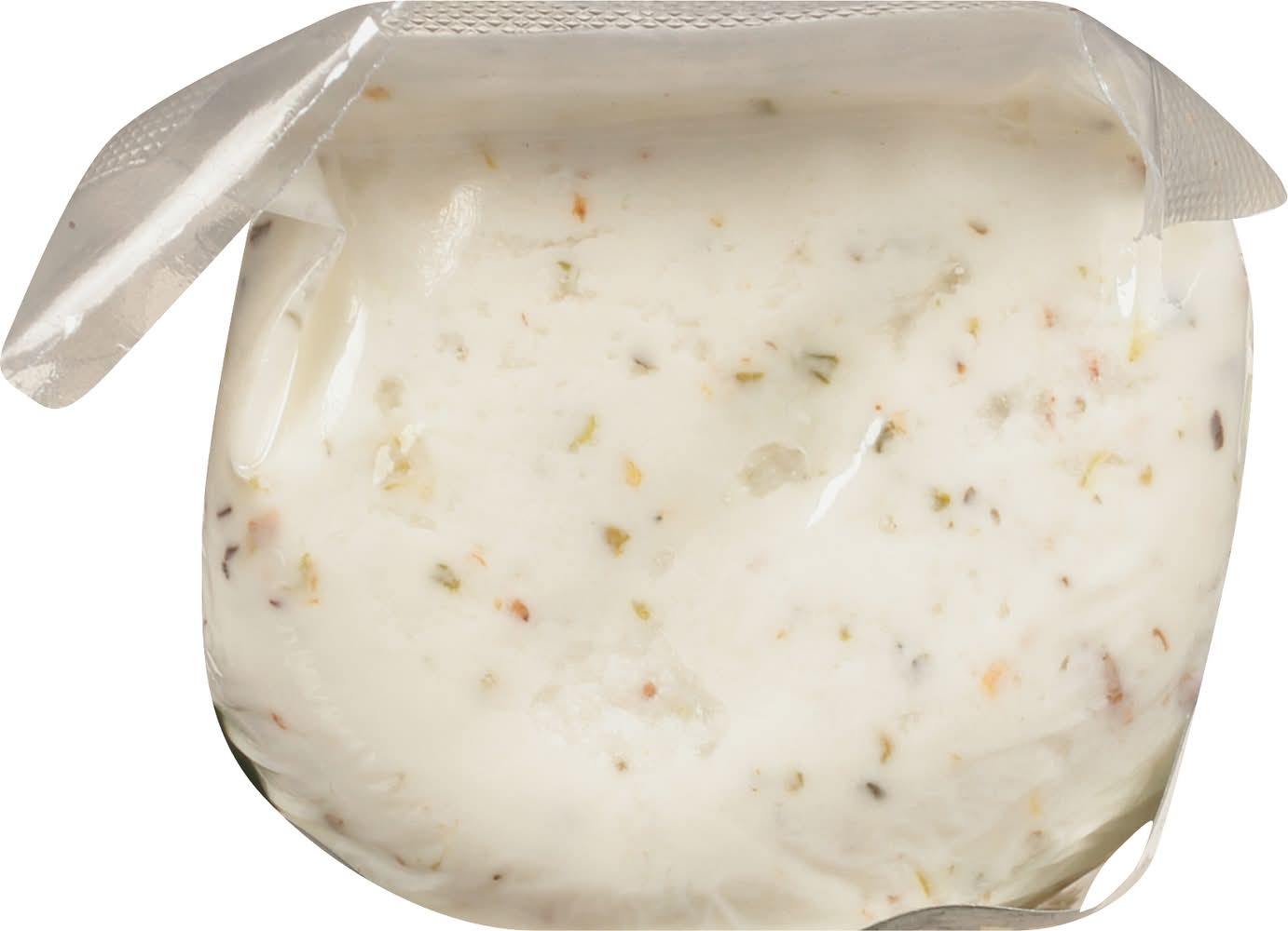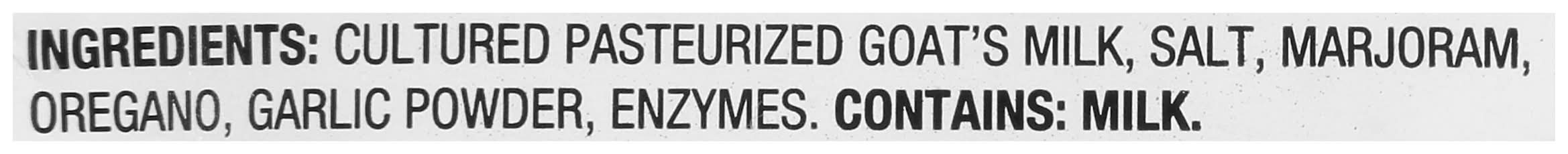 Ingredients: Cultured Pasteurized Goat’s Milk, Salt, Marjoram, Oregano, Garlic Powder, Enzymes Contains: Milk