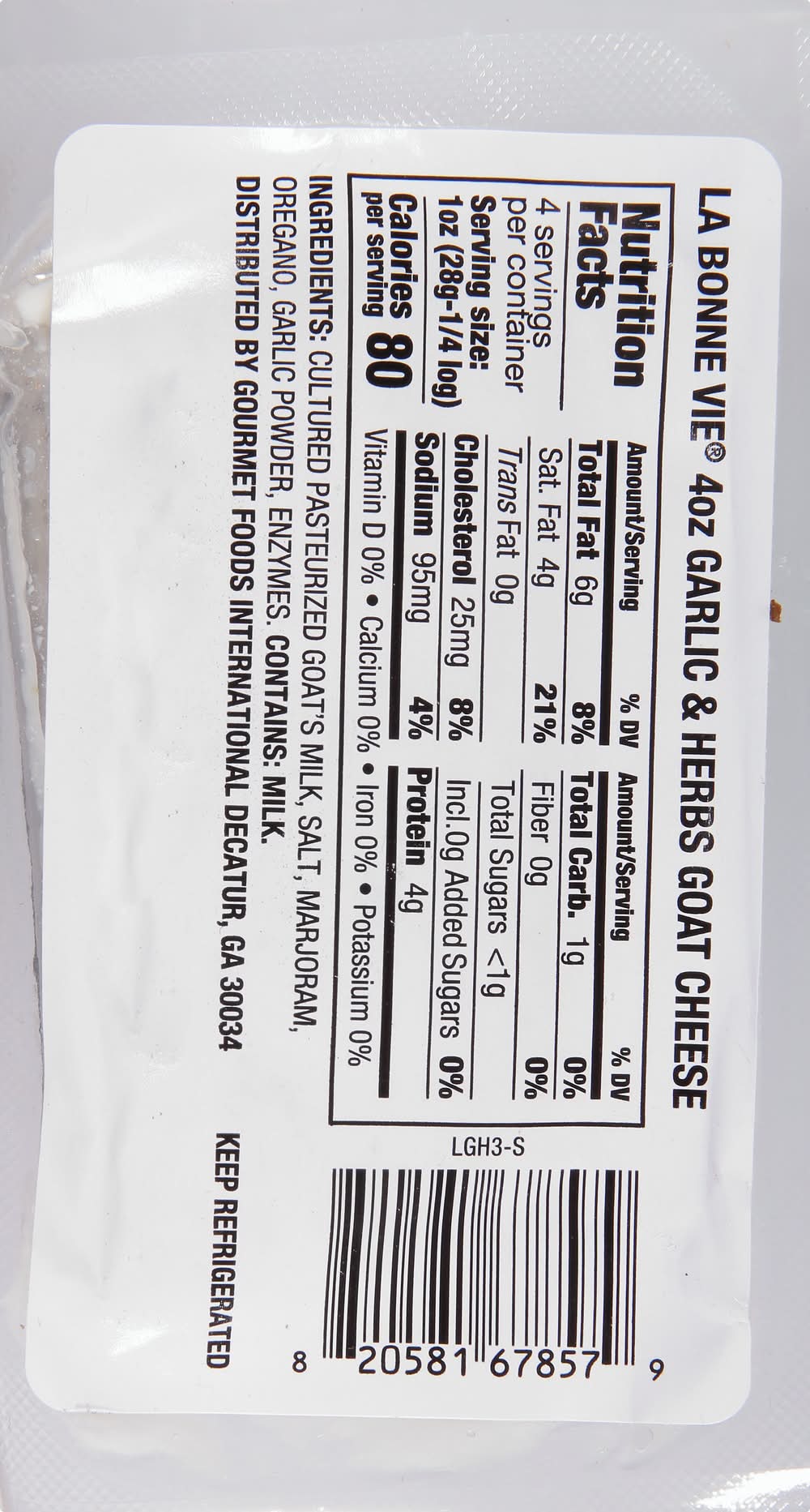 La Bonne Vie Garlic And Herb Goat Cheese Log Gourmet Foods International, Decatur,GA,30034