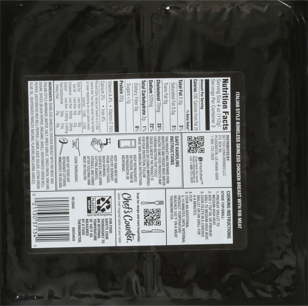 Chef's Counter Boneless Skinless Italian Style Chicken Breast With Rib Meat (12 oz)