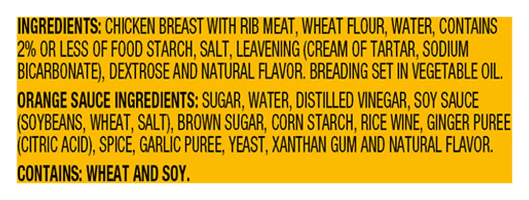 Foster Farms , Chicken Breast Portions, Orange Chicken, Orange Glaze • Flavor: Orange glaze • Number of servings: 5 • Foster Farms, Livingston, CA, 95334, Ph: 800-255-7227