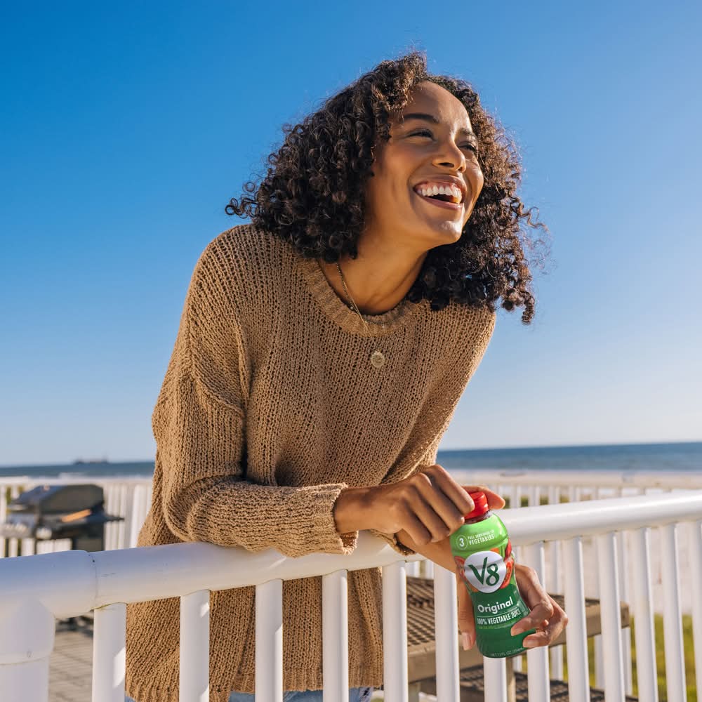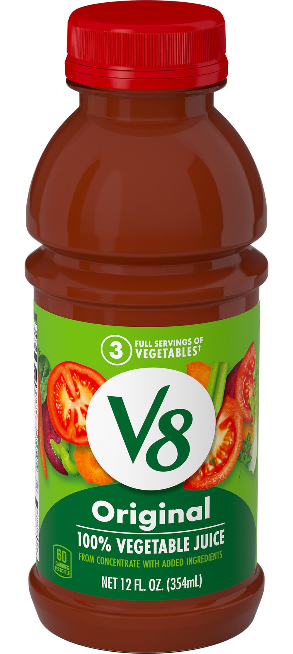 Savor the plant based goodness of V8 Original 100% Vegetable Juice. A satisfying alternative to other juices, the original V8 juice is made with concentrated tomato juice along with the juices of seven other vegetables. The result is a 100% juice with a distinctly rich, savory flavor. Delicious and nutritious, V8 vegetable juice is an easy way to help get your daily recommended veggies. Each 12 fl oz bottle contains 3 servings of vegetables and is an excellent source of Vitamins A and C. Our veggie juice is also gluten free and non GMO with no sugar added* and no artificial colors. Enjoy V8 on its own straight from the bottle, over ice, or seasoned with pepper and adorned with your favorite garnishes. It’s great as a breakfast drink, afternoon snack, or post workout drink. In addition to sipping it as a vegetable drink, you can also use V8 to add flavor and nutrition to a variety of dishes. With our single-serve cans and bottles, taking the nutrition of V8 vegetable drink on the go has never been easier. (*Not a low calorie food; see nutrition panel for sugar and calorie content) • Brand: V8 • Packaging: Reusable