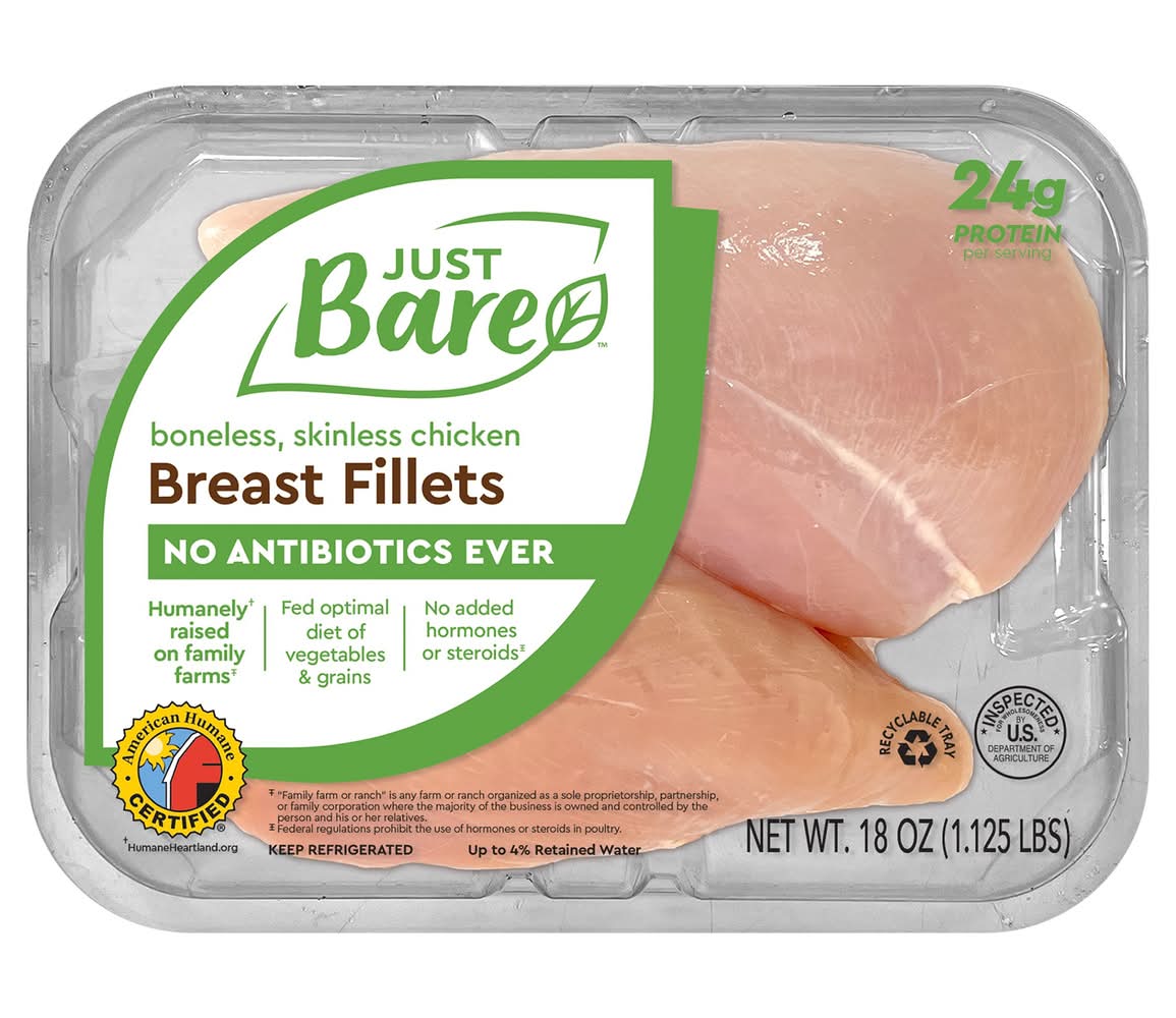 Just Bare Boneless Skinless Chicken Breast Fillets (18 oz)