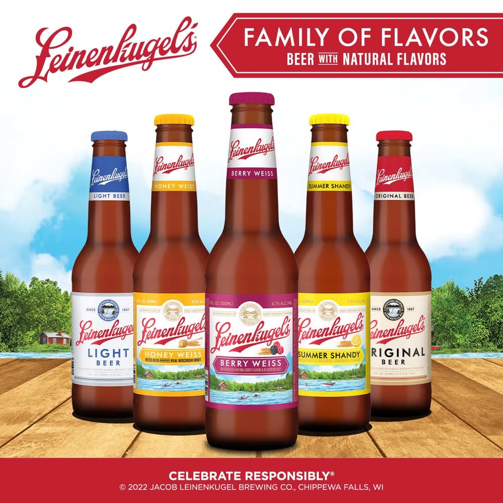 Experience the crisp, fruit-filled flavor of Leinenkugel's Berry Weiss Craft Beer, a medium-bodied weiss beer with natural berry flavors and blackberry juice and 4.7% ABV. This award-winning beer* is a perfect way to kick back and relax with friends and family all year round. A rich, berry aroma enhances a balanced, wheat-malt undertone with the fresh flavors of indigenous blackberries, elderberries and loganberries. Whether you're hosting a casual gathering or you're looking for a new beer flavor that's deliciously different, a 12-pack of Leinenkugel's Berry Weiss Craft Beer is a unique twist on the classic American weiss taste. * Leinenkugel's Berry Weiss, Jacob Leinenkugel Brewing Co., a 2004 bronze-medal win and a 2007 gold-medal win in the Fruit and Vegetable Beer category at the Great American Beer Festival Jacob Leinenkugel founded the Leinenkugel family brewery in 1867 with the hope of infusing his German family heritage into delicious, enjoyable beers. Today, the sixth generation of Leinenkugels continues to brew the same German-inspired recipes in a variety of tastes and flavors. • Brand: Leinenkugel's • Category: Fruit beer • Pack size: 12 • Alcohol by volume: 4.7%