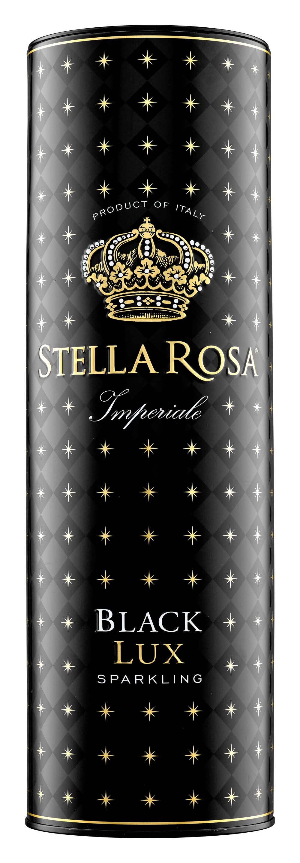 Stellabrate year around with our Stella Rosa Imperiale Black Lux Sparkling Red Wine in a limited edition tin that is perfect for gifting. Stella Rosa Imperiale Black Lux Sparkling Red Wine is a proprietary blend of several red grape varietals including Brachetto. The grapes are harvested, pressed, centrifuged, and then held cold as juice at 28 degrees Fahrenheit. The juice is fermented at various intervals throughout the year allowing the wine to remain fresh and delicate. The Riboli family uses this technique to capture the fresh flavors of blackberry, blueberry, and raspberry. During fermentation process, the alcohol is created in tandem with the wine’s natural carbonation. Once the desired sweetness is achieved, the wine is centrifuged and bottled. Its natural acidity and low pH strike the perfect balance with the wine’s inherent sweetness. It is not cloying or heavy. Serve chilled by-the-glass, pour over ice, or mix with your favorite spirit for an all natural, fruit-forward cocktail. Alcohol by volume: 6.5%