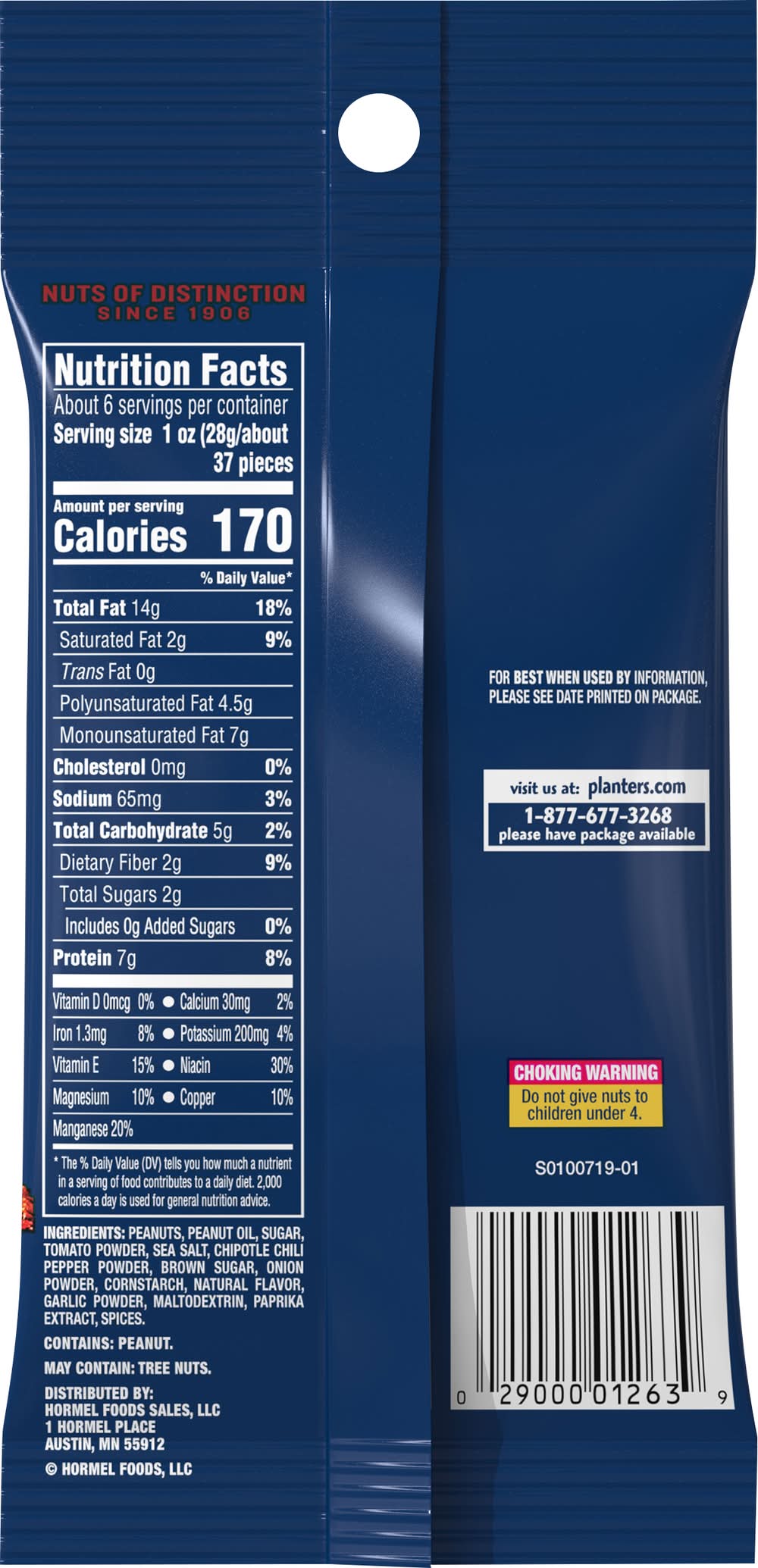 Peanuts, Hot Chipotle • Number of servings: 6 • Hormel Foods Sales, LLC, Austin, MN, 55912, Ph: 877-677-3268