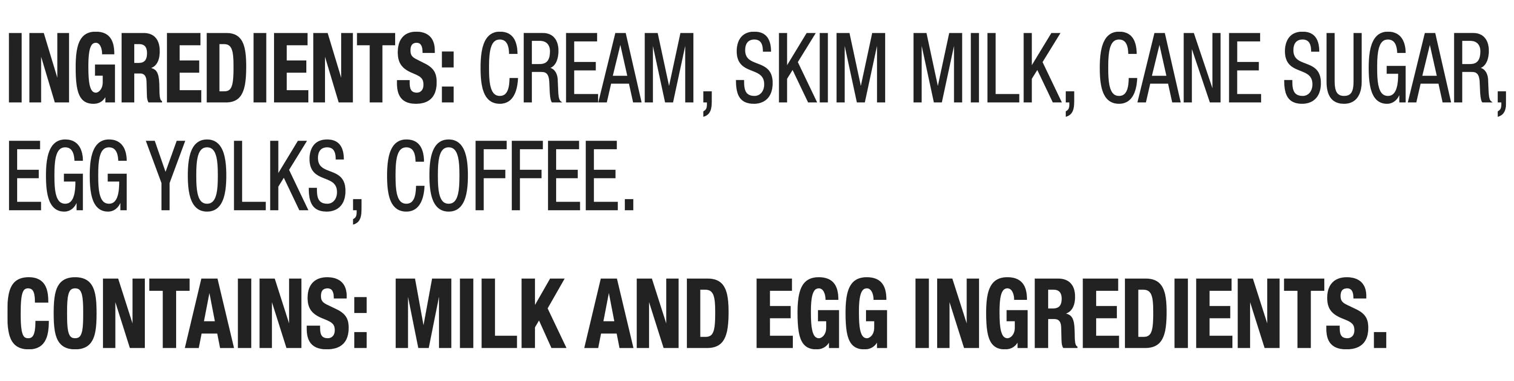 Ingredients: Cream, Skim Milk, Cane Sugar, Egg Yolks, Coffee Contains: Milk, Eggs