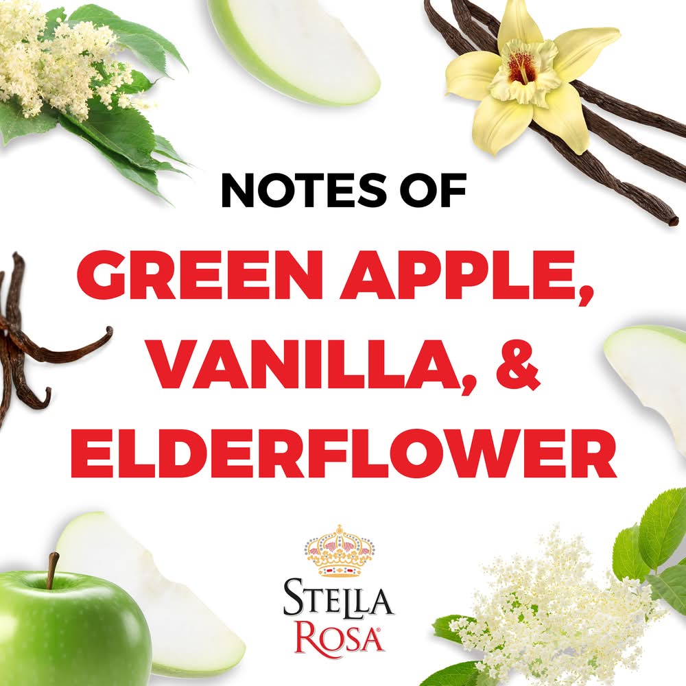 Stella Rosa Platinum French Vanilla White Wine is crafted in the small village of Santo Stefano Belbo. The Riboli Family has created this special blend of several aromatic grape varietals including Moscato Canelli. The grapes are harvested, pressed, centrifuged, and then held cold as juice at 28 degrees Fahrenheit. The juice is fermented at various intervals throughout the year allowing the wine to remain fresh and delicate. The Riboli family uses this technique to capture the fresh flavors of green apple, fragrant vanilla, and citrusy elderflower. During fermentation process, the alcohol is created in tandem with the wine’s natural carbonation. Once the desired sweetness is achieved, the wine is centrifuged and bottled. Its natural acidity and low pH strike the perfect balance with the wine’s inherent sweetness. It is not cloying or heavy. Serve chilled by-the-glass, pour over ice, or mix with your favorite spirit for an all-natural, fruit-forward cocktail. • Brand: Stella rosa • Alcohol by volume: 5% • Number of servings: 5