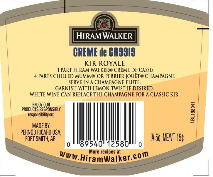 Created from a unique blending of luscious currant berries and spirits, Hiram Walker Crème de Cassis is deep red and delicious. • Brand: Hiram walker • Alcohol by volume: 15% • Pernod Ricard, 133 Peel Street, Toronto, ON M5R 2P3, Canada