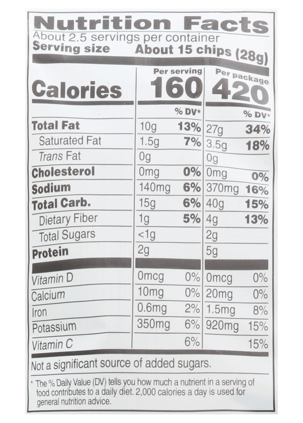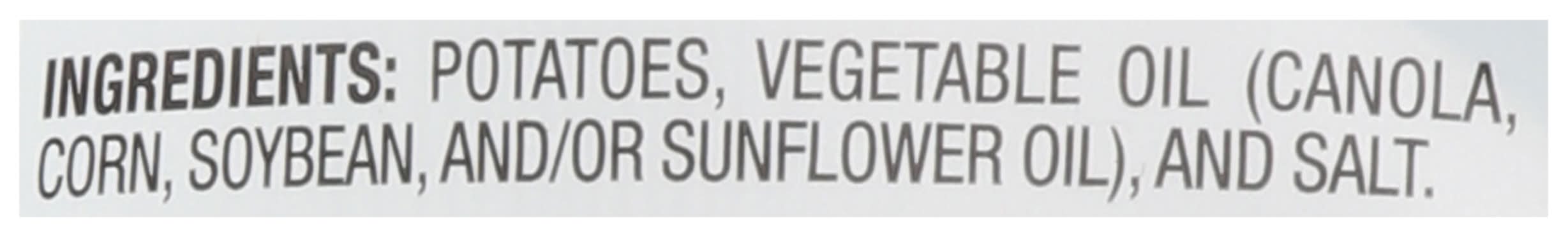 Ingredients: Potatoes, Vegetable Oil (Canola, Corn, Soybean, and/or Sunflower Oil), and Salt Contains: Corn, Soybeans