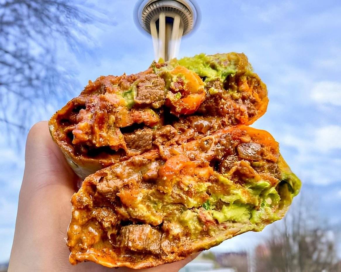 Hella big flour tortilla, carne asada, pollo asado or barbacoa, straight-cut fries, cheese, sour cream, guacamole & secret sauce.