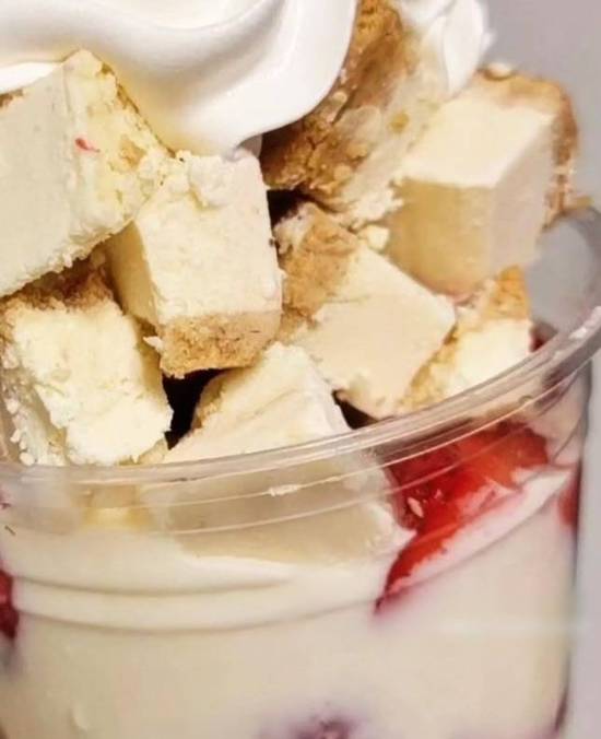 Sweet strawberries and creamy cheesecake, a delightful dessert combination.