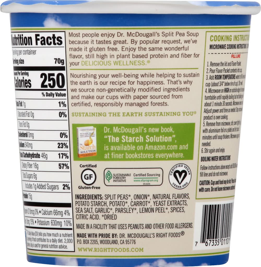 Soup, Vegan, Split Pea • Brand: Dr. mcdougall's • gluten-free, vegan, GMO-free, vegetarian • Dr. McDougall's Right Foods, PO Box 2205,Woodland,CA,95776