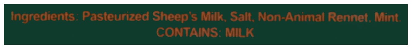 Ingredients: Pasteurized Sheep’s Milk, Salt, Non-Animal Rennet, Mint Contains: Milk