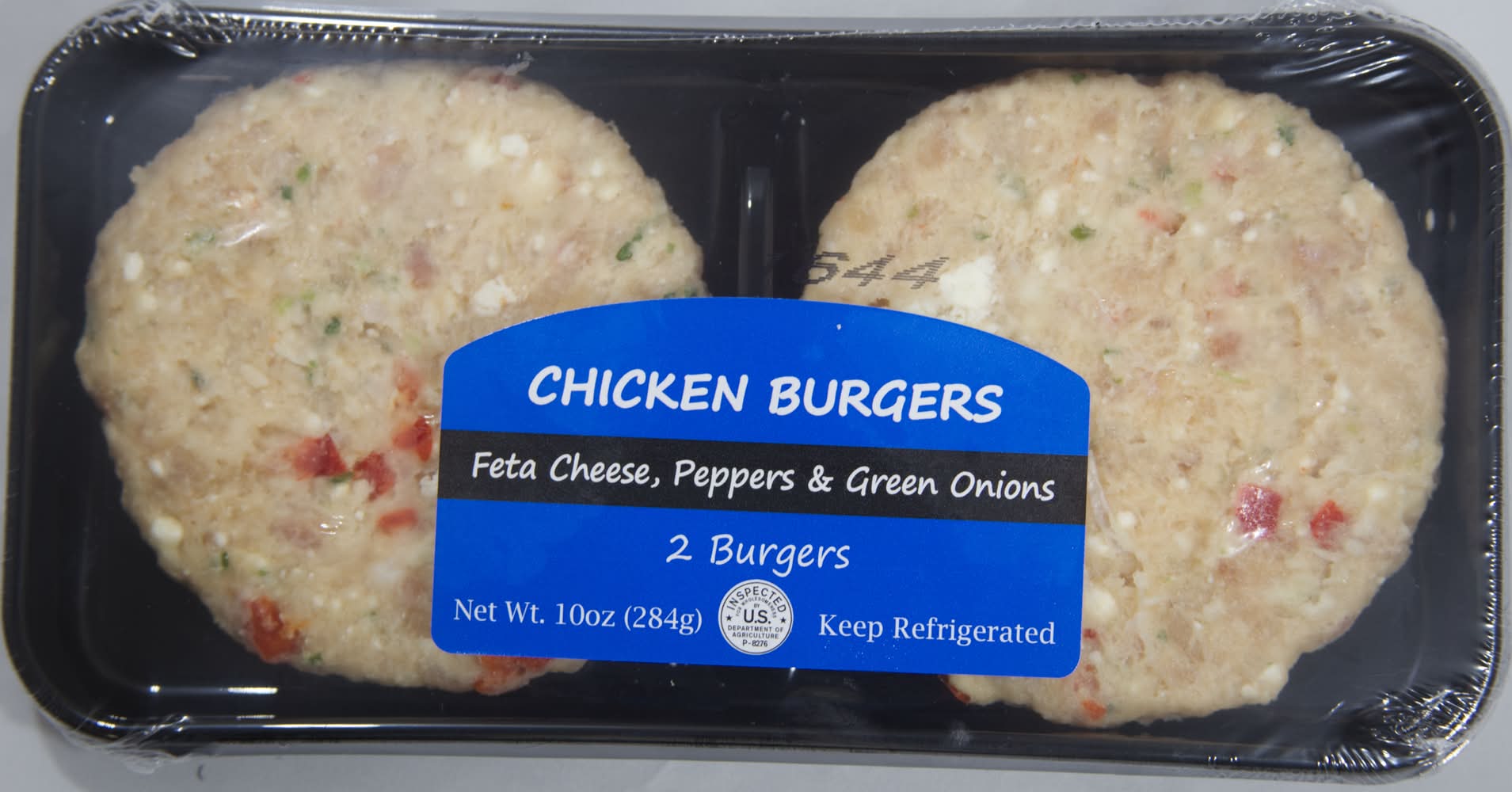 Chicken Burger Feta Cheese, Peppers and Green Onion, 2 Burgers.