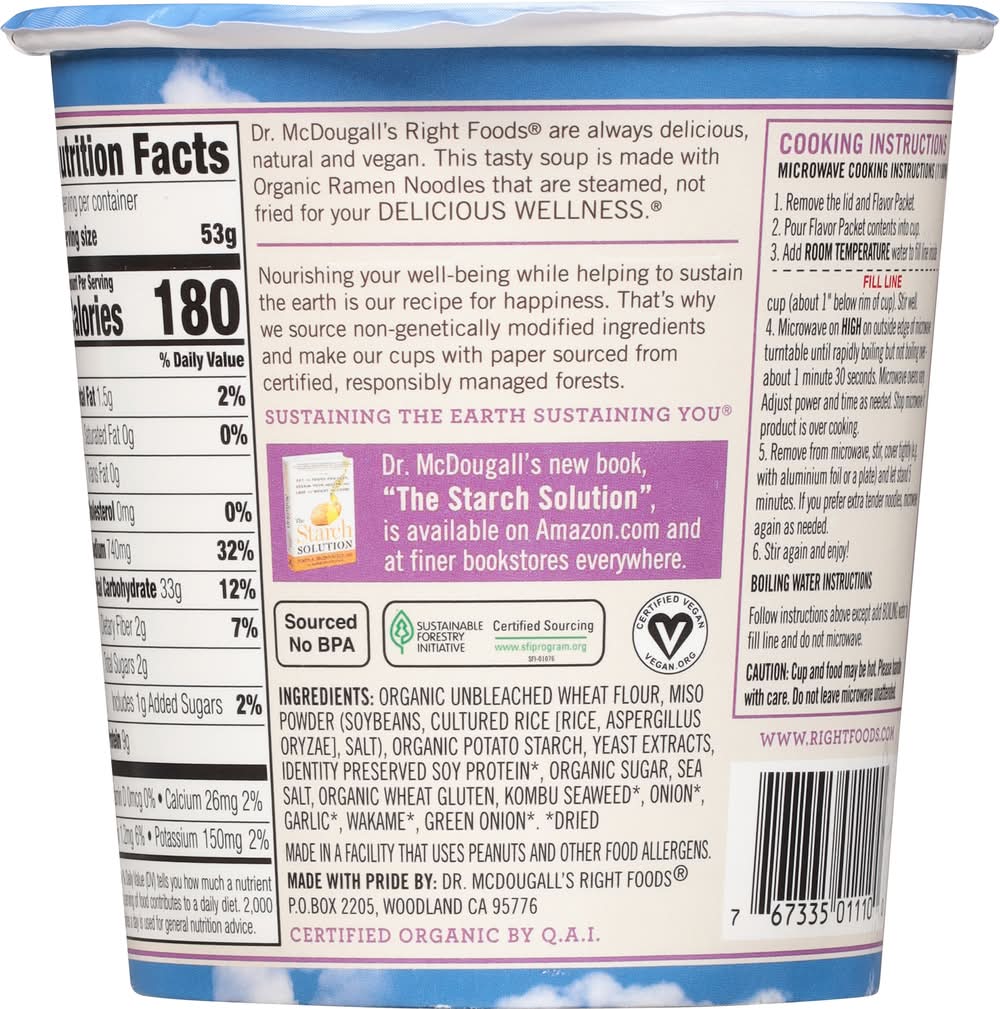 Noodle Soup, Vegan, Miso Ramen Dr Mcdougalls Right Foods, PO Box 2205, Woodland, CA 95776