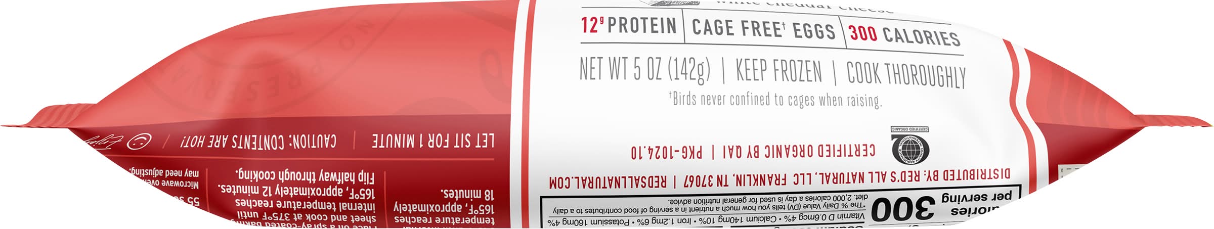 Directions for use: Cooking Instructions: Conventional Oven (Preferred Method): Remove wrapper. Thaw by covering with a microwave-safe plate and microwave on high for 1 minute. Place on a spray-coated baking sheet and cook at 375 degrees F until internal temperature reaches 165 degrees F, approximately 12 minutes. Flip halfway through cooking. Let sit for 1 minute. Microwave Oven (1000 watt): Remove wrapper. Place on a microwave-safe plate and cover with a microwave-safe plate or lid. Cook until internal temperature reaches 165 degrees F, approximately 55 seconds per side. Microwave ovens vary; cooking times may need adjusting. Let sit for 1 minute. Enjoy! Caution: Contents are hot! Keep frozen. Storage recommendation: Keep frozen.