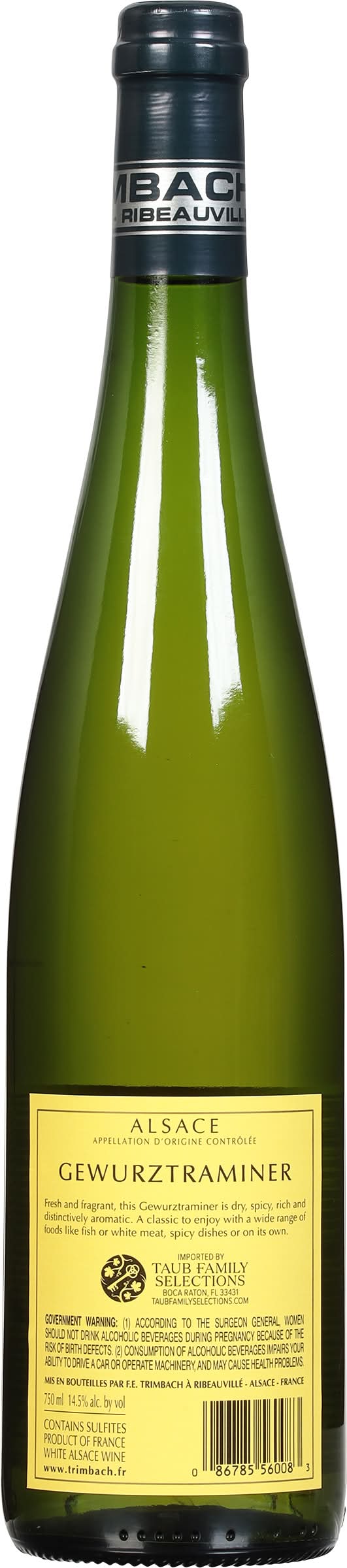 Since 1626, F.E. Trimbach has crafted wines of precision and focus from the classic terroirs of Alsace. Fresh and fragrant, Trimbach Gewurztraminer is dry, spicy, rich and distinctively aromatic - a classic to enjoy with a wide range of foods like fish or white meat, spicy dishes or on its own. taubfamilyselections.com.29 Product of France. Alcohol by volume: 14.5%