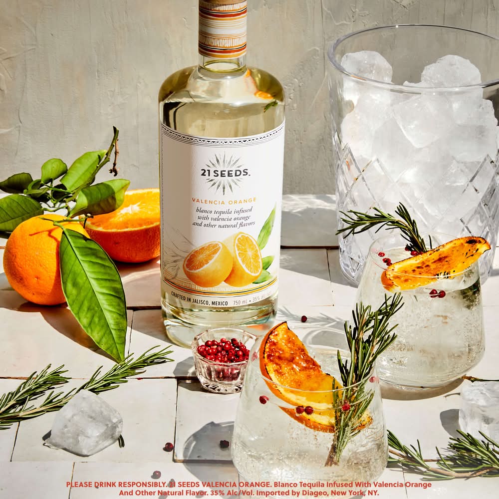 Experience the flavor of simplicity with 21Seeds Valencia Orange Infused Tequila. With bright orange notes and a lightly sweet, citrus taste, our tequila blanco is infused with the juice of real fruit to create a delightfully smooth infusion that is not too sweet. 21Seeds crafts its award-winning tequila alcohol by slow cooking agaves from Jalisco. The double distilling and cold filtering processes result in a blanco base ready to be infused with the juice of real fruit for the perfect tequila gift with incredible taste. Best enjoyed in a Seed & Soda cocktail. 21Seeds Valencia Orange Blanco Tequila Infused with Juice of Real Fruit & Natural Flavors) was awarded a Gold Medal in 2023 at the San Francisco World Spirits Competition. Includes one 70 proof 750 mL bottle of 21Seeds Valencia Orange Infused Tequila. Please drink responsibly. Alcohol by volume: 35%