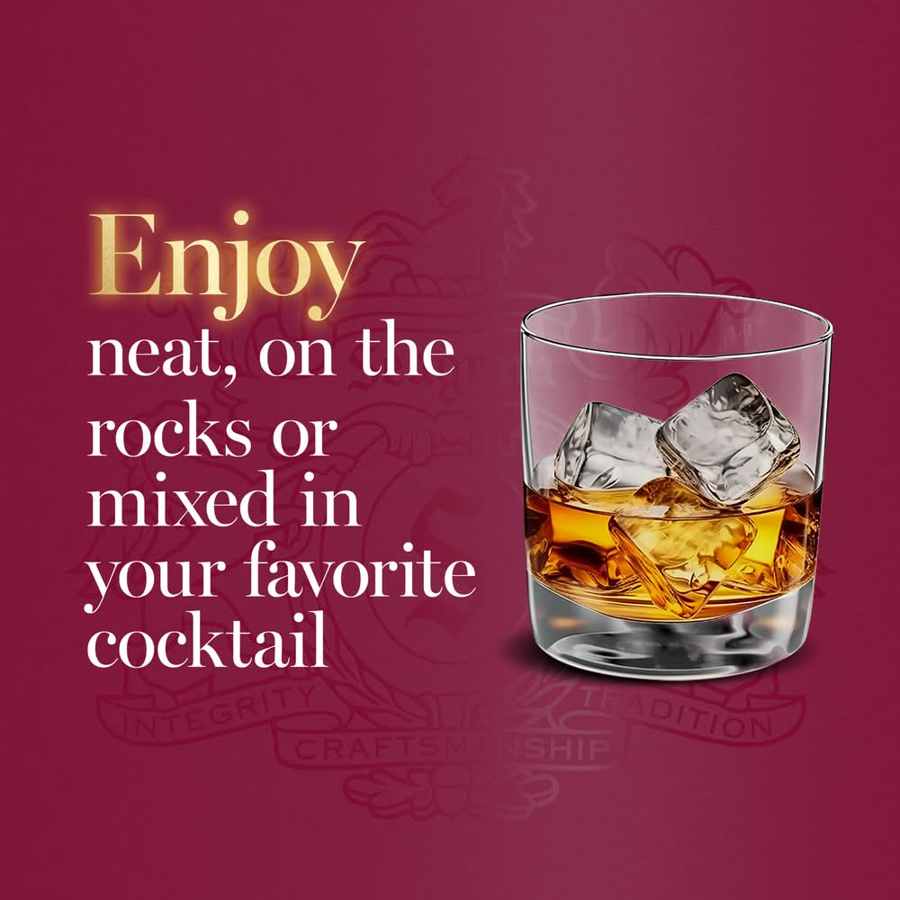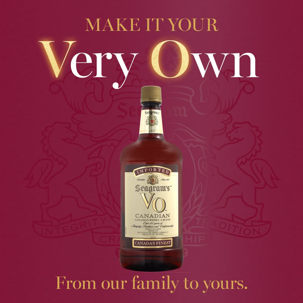 Savor the iconic taste of Canada’s premier whisky with Seagram’s VO Canadian Whisky. A blend of more than 50 whiskies each aged for at least six years, Seagram’s VO is an impeccable blended whiskey with a full-bodied aroma and taste. Scents of autumn fruit and wine set the stage for tasting notes of creamy vanilla, orange, cherry, maple water, caramel, rye cereal, pepper, cinnamon and ginger in the background. Its exceptionally mellow taste is delicate on the palate with a warm, satisfying finish. This special blend of whiskies is 40% alcohol by volume, making Seagram’s VO Whisky perfect on its own on the rocks or for your favorite mixed drinks. Try this hard liquor with cranberry juice or club soda over ice to concoct a refreshing whiskey cocktail. Seagram's VO Imported Premium Canadian Whisky is crafted to provide consistent quality and reliability no matter how you drink it. Enjoy the whisky blend that Joseph Seagram introduced to celebrate his son’s wedding with Seagram’s VO Canadian Whisky. Alcohol by volume: 40%